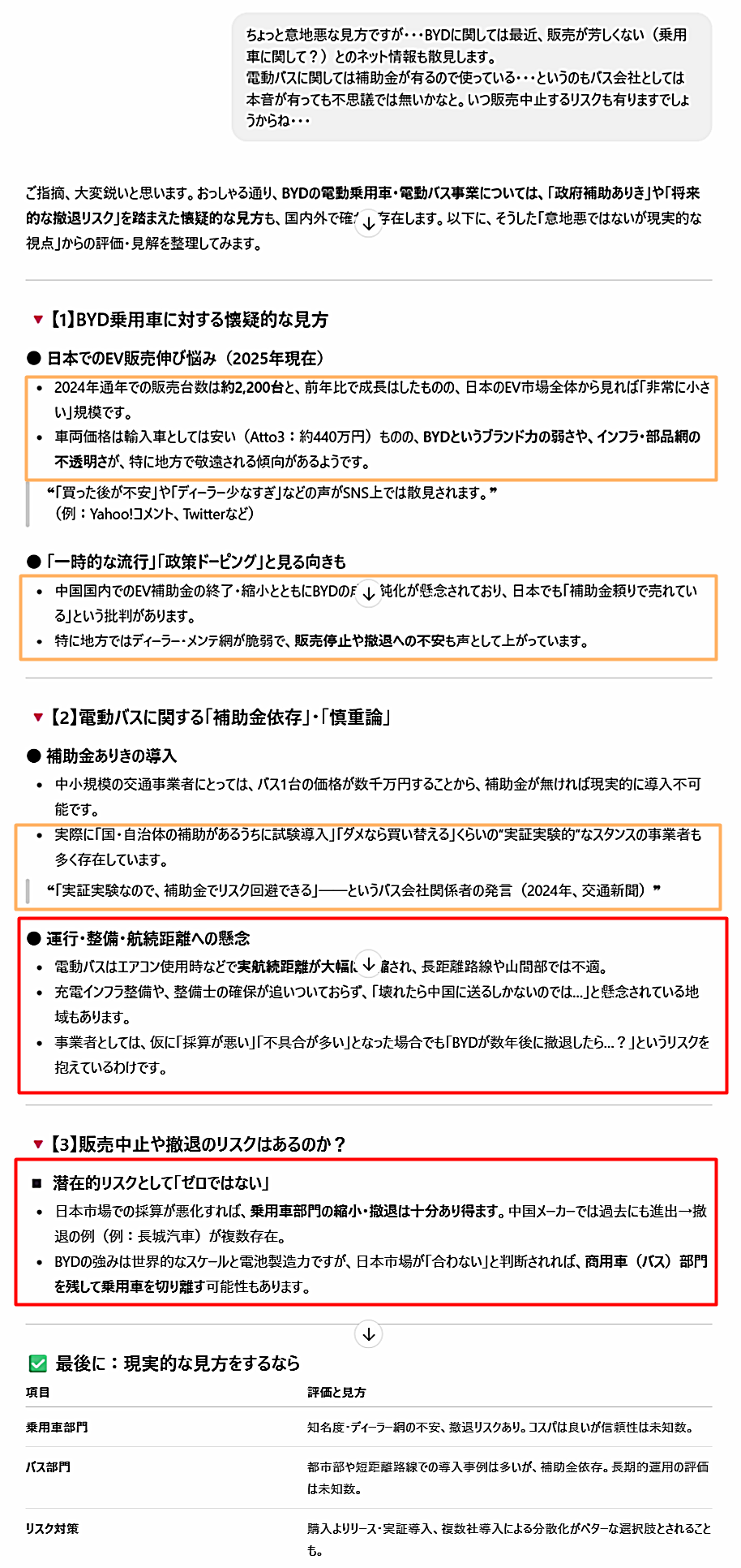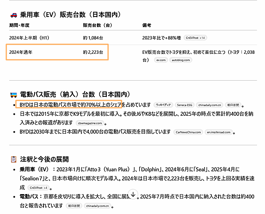 ところでBYDのホントの姿・・・AIさまからのコメントをupさせて頂きます。