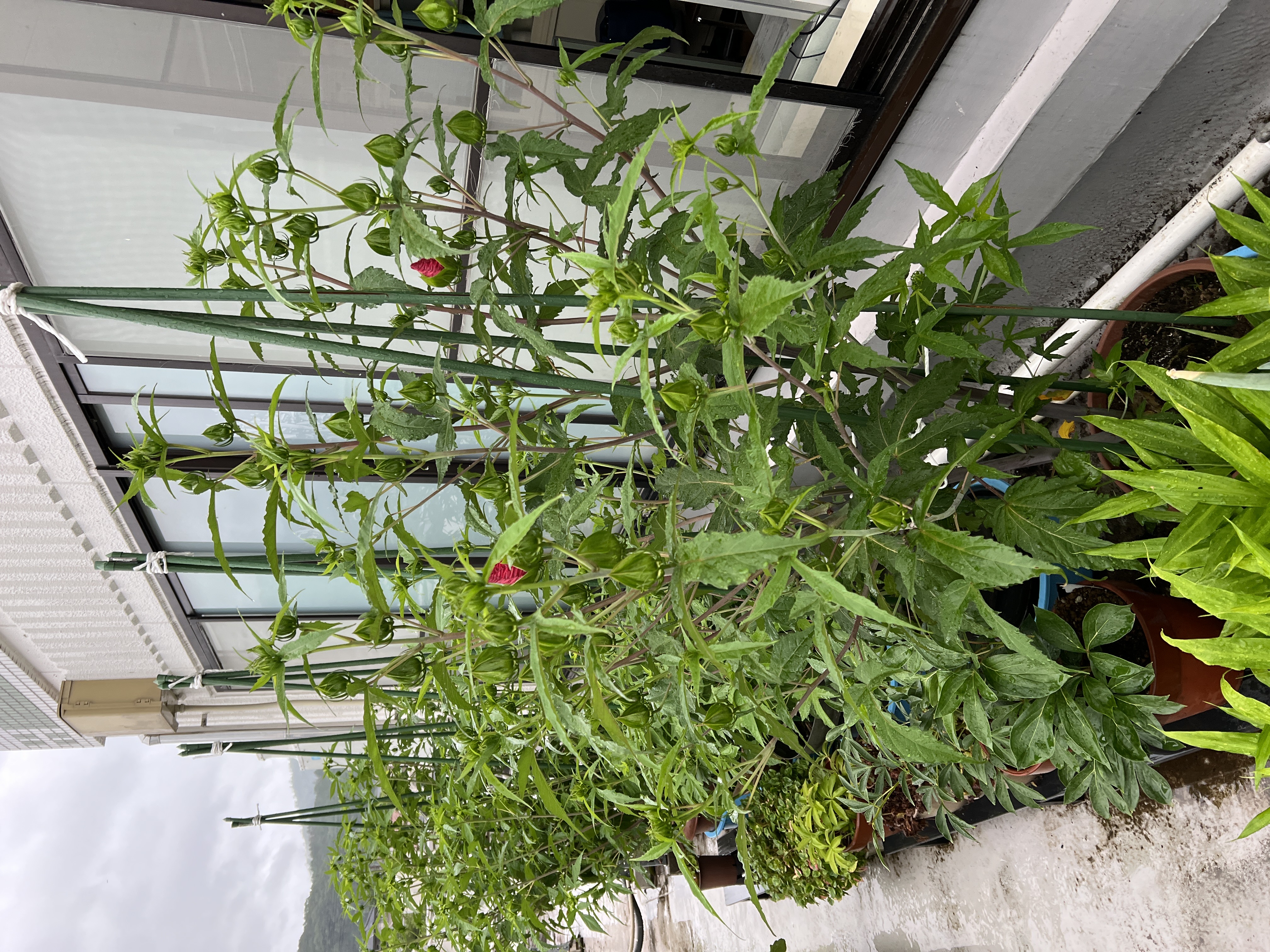 7月から始めた水遣りですが、お盆を過ぎた頃から少しずつタイタンビカスの花数が減って来ました。