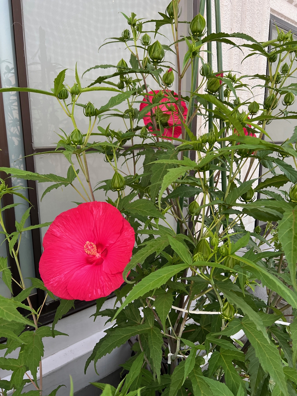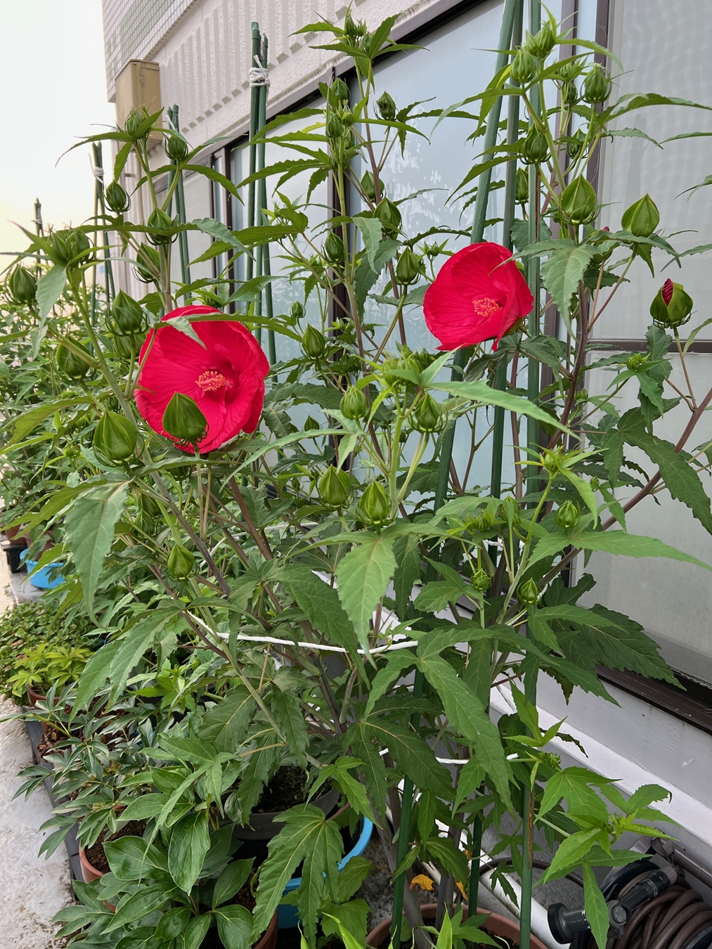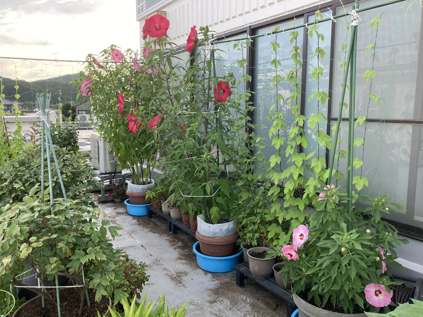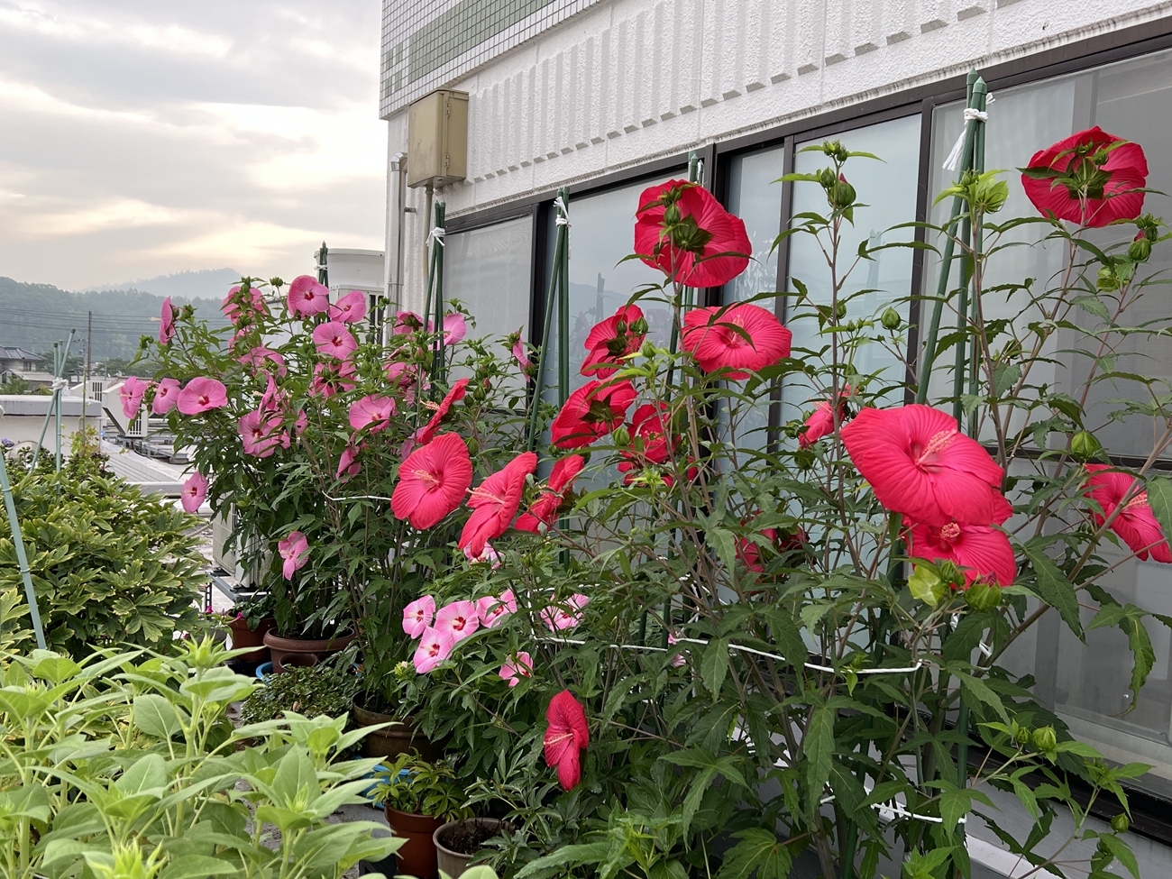 タイタンビカスは3年目となり・・・職場のスタッフさんから「花、綺麗ね~」とお褒めの言葉を賜りまして、調子に乗って舞い上がっていましたが。