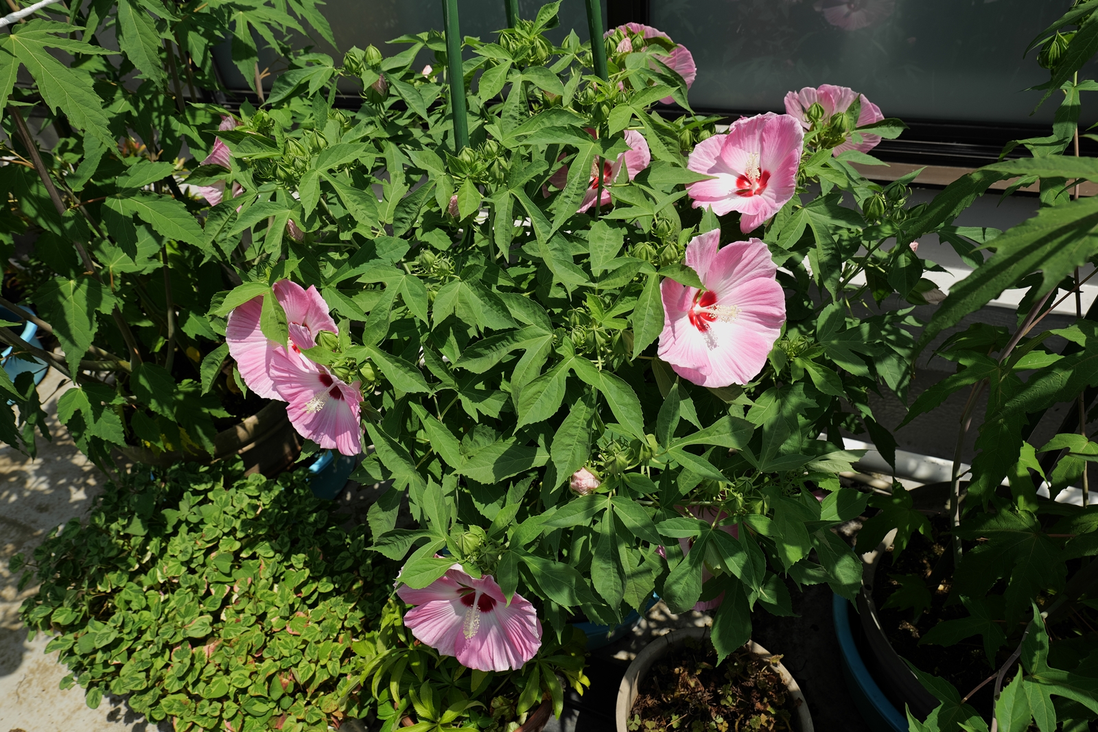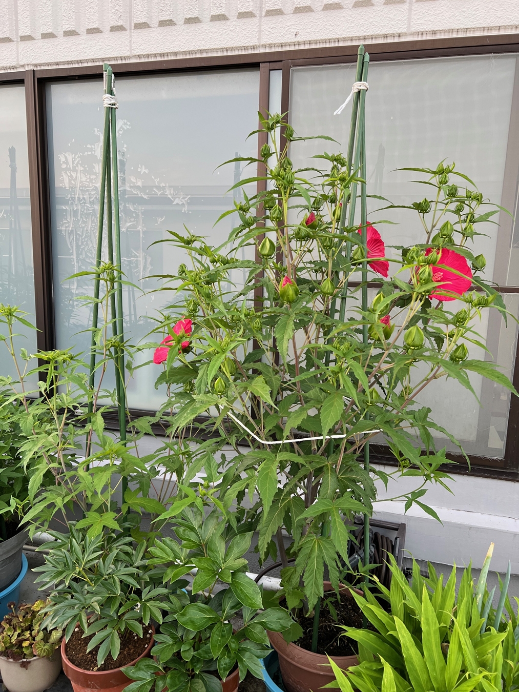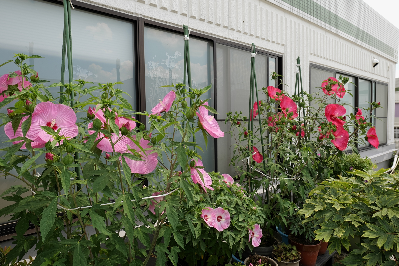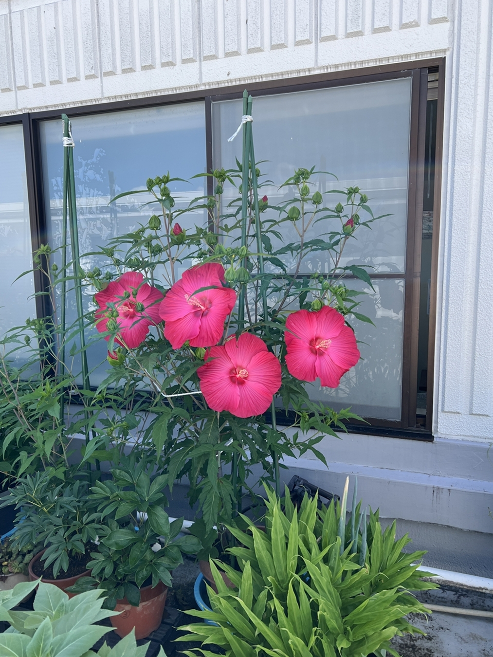 タイタンビカスは3年目となり・・・職場のスタッフさんから「花、綺麗ね~」とお褒めの言葉を賜りまして、調子に乗って舞い上がっていましたが。