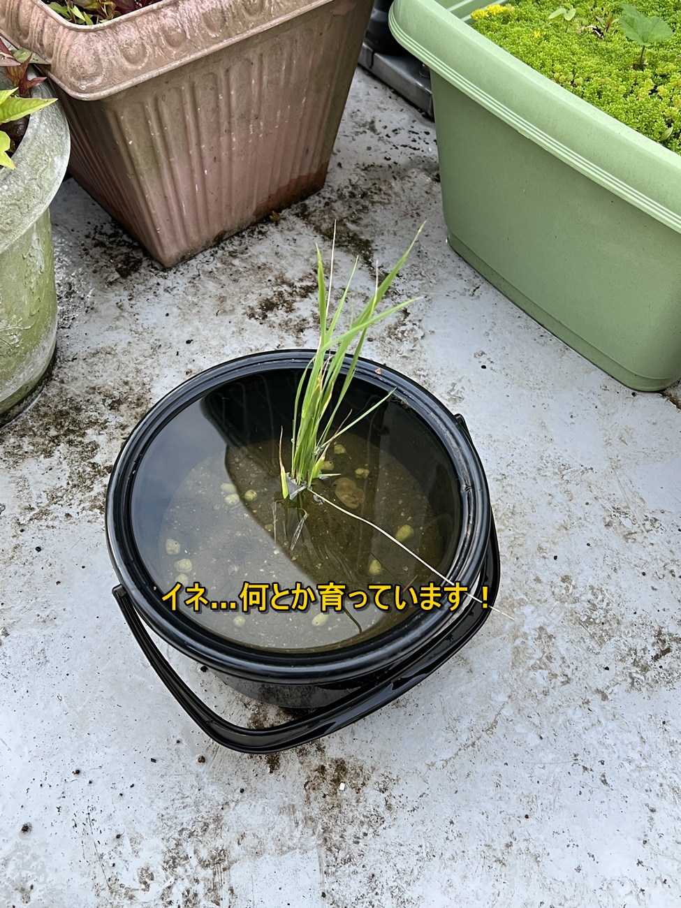 仕方なく、タライの片方の底にブロックを敷き込んで斜めの状態にして。そこから植木鉢を引きずり出して来て、何とか仕事を終えることが出来たのでした。もう本当に情けない限りです。