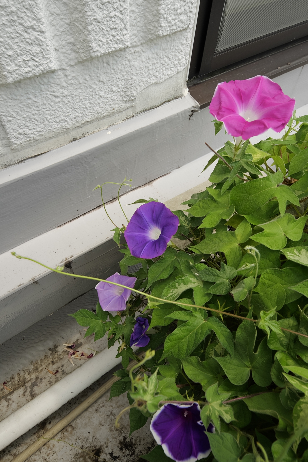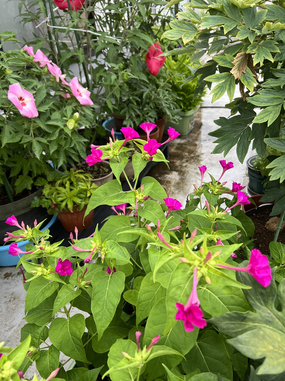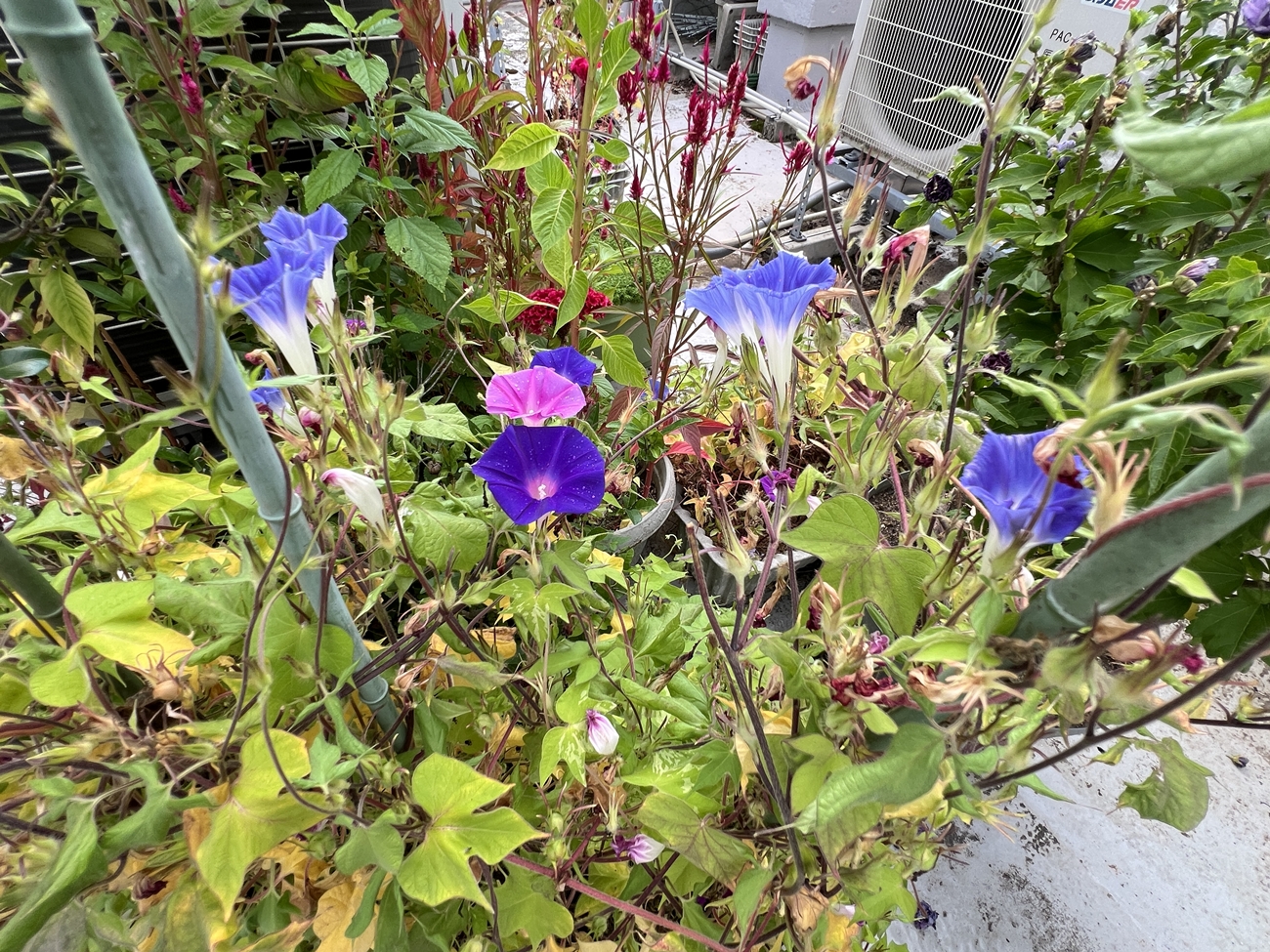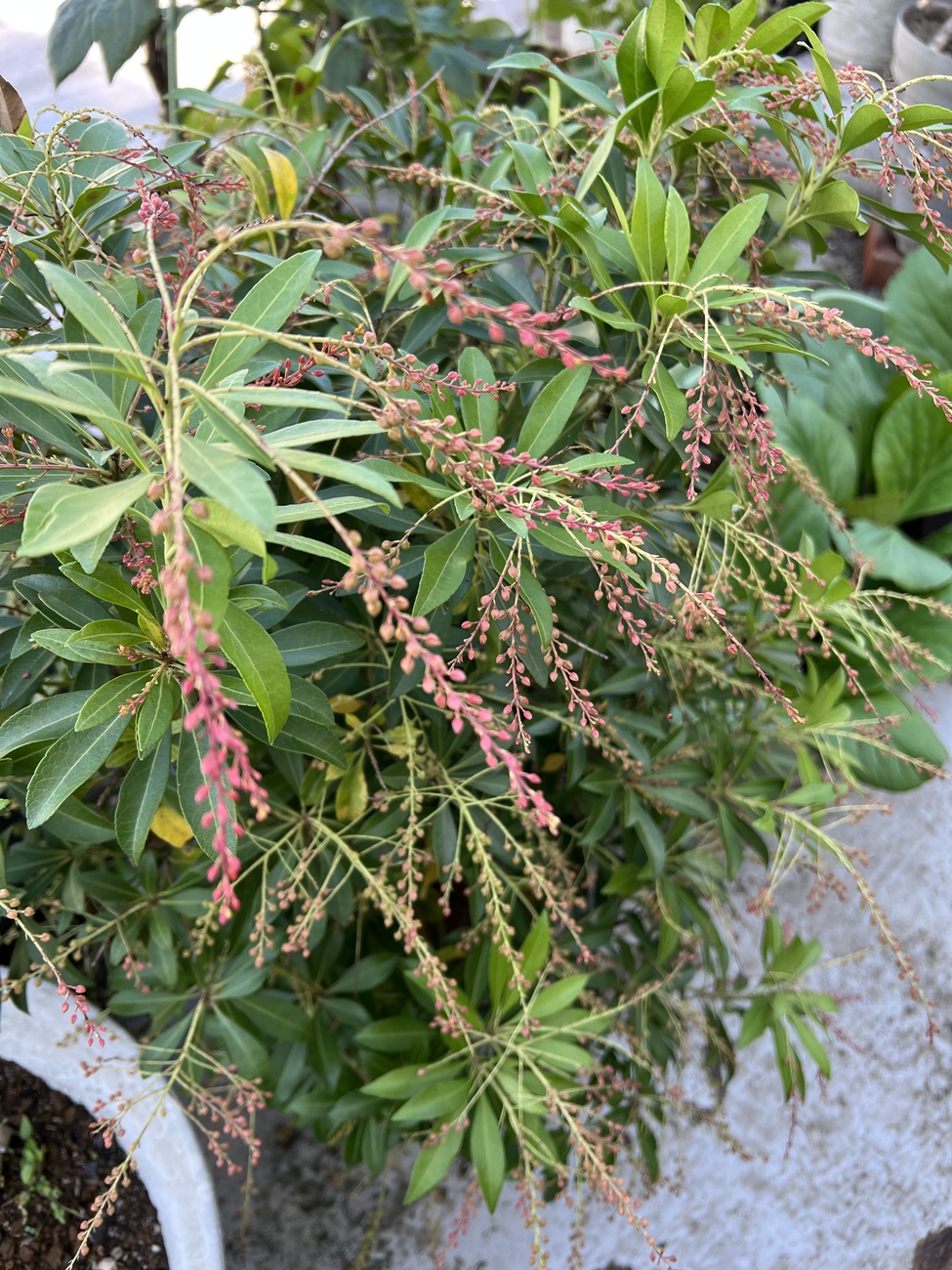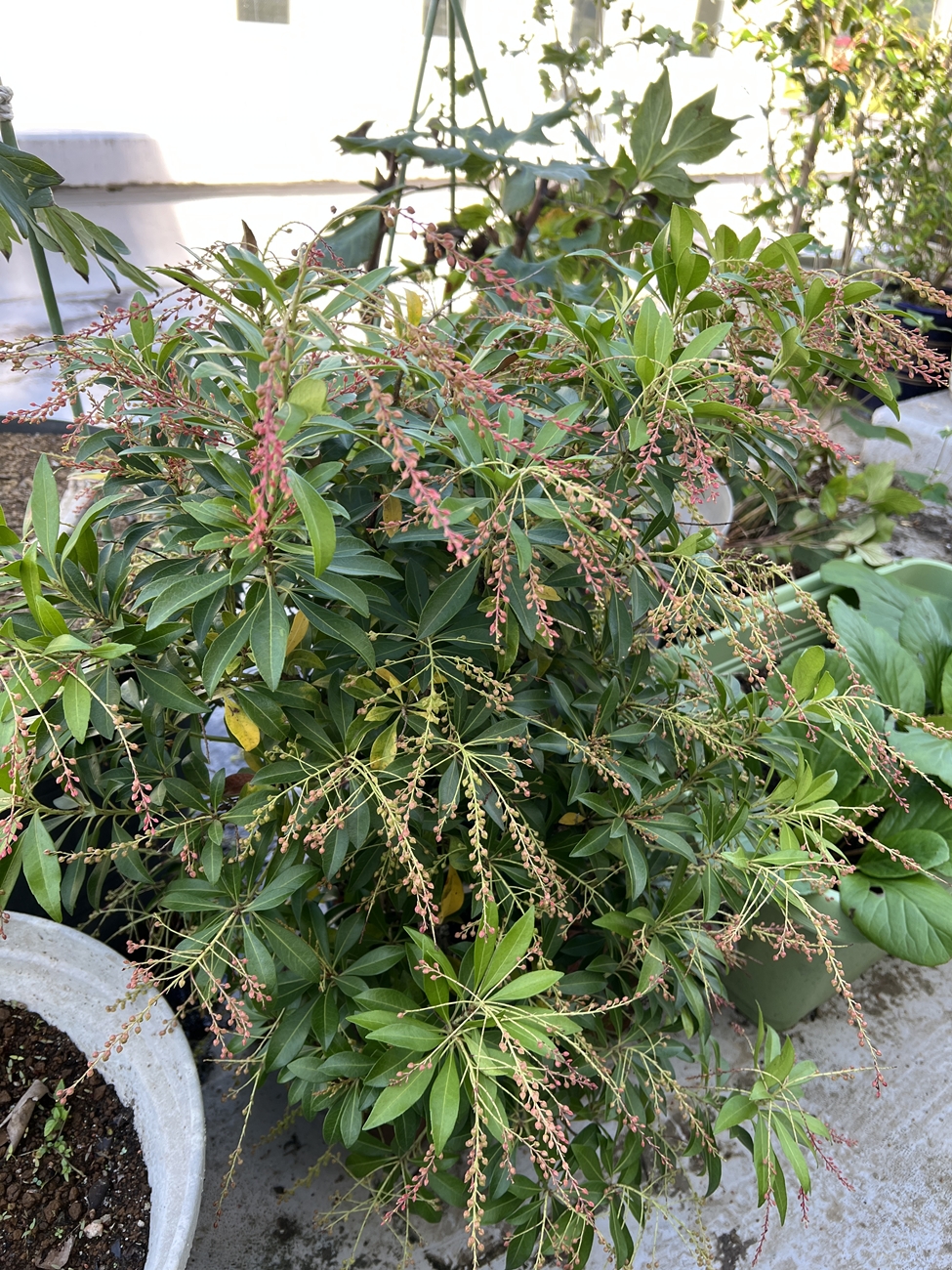 | これまでアセビの状況は宮島に行って確認するしか方法は有りませんでしたが、今はすぐに👀・・OKです | 一応は枝垂れアサガオ(変化アサガオの1種)&諸々の種類が混在したプランター,昨夕の雨で水切れが解消した様です |