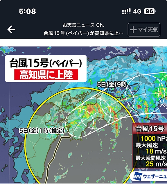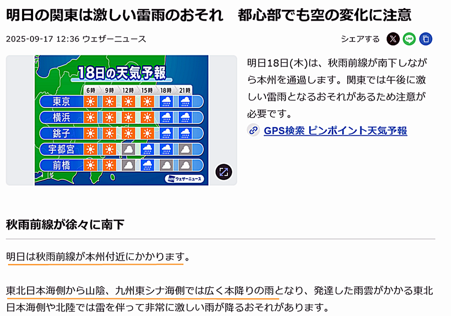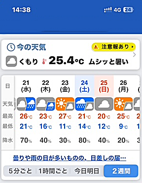 再度、スマホのお天気サイトで確認しますと…いつの間にか☂マークで埋め尽くされていました。一体、いつの間に?