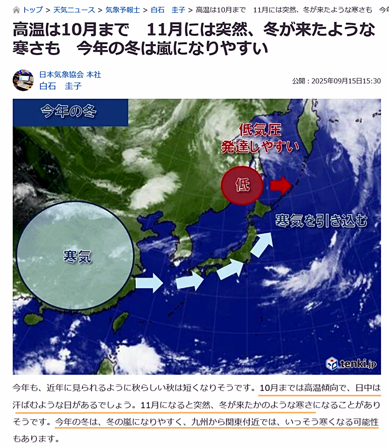 今シーズンもひょっとして・・・昨年の様に10月迄猛暑が続き、突如(秋をブッ飛ばして)冬めく様になってしまうのでしょうか・・・・💦