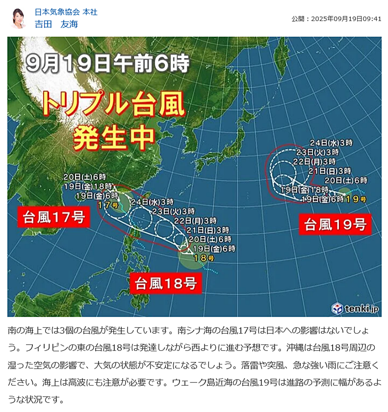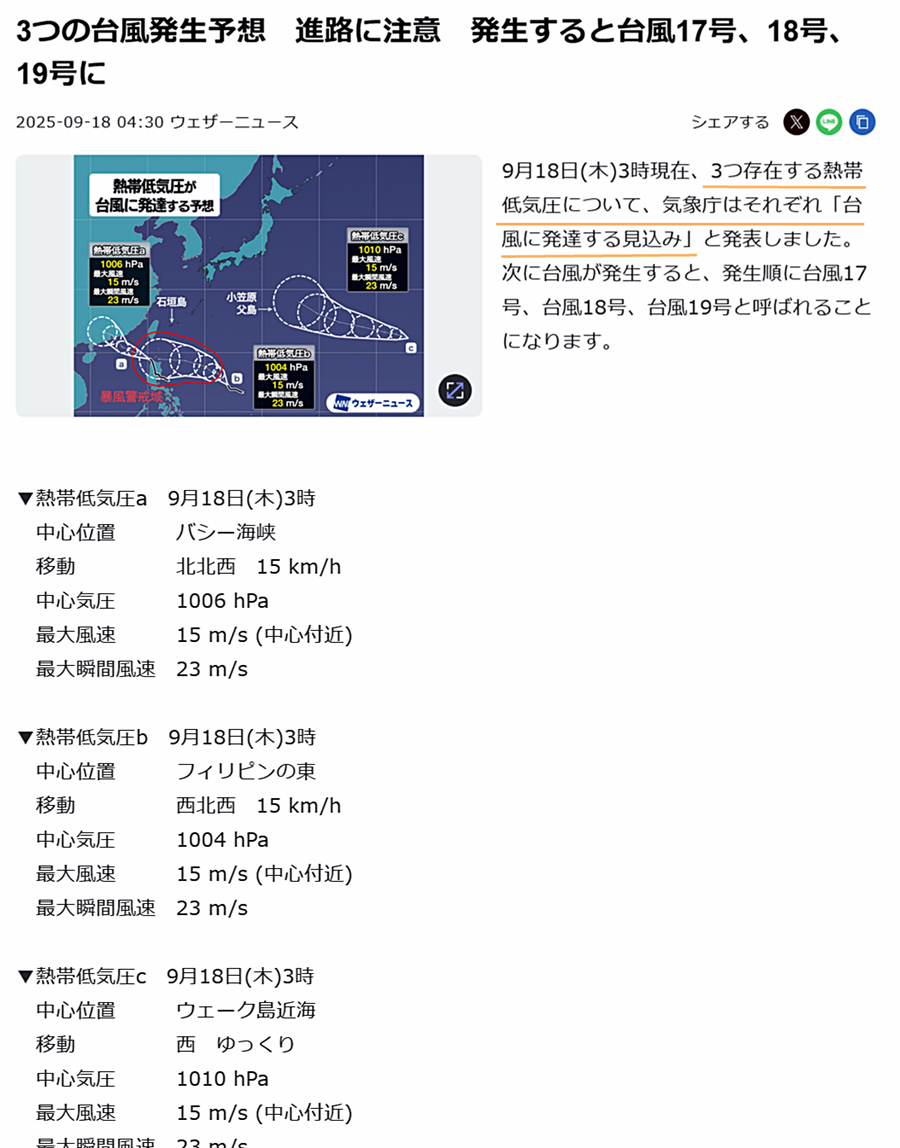 願わくば3つの台風とも日本をスルーして欲しいモノですね💦