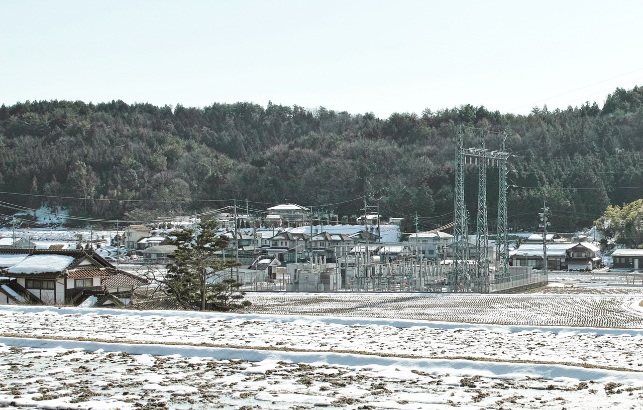 人家の途切れた所に、変電所が有ります。