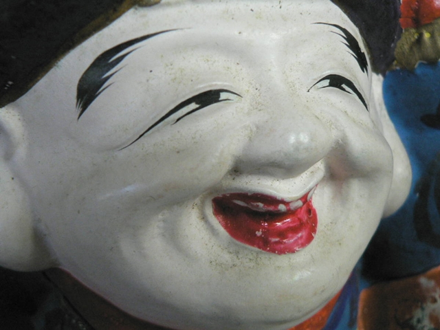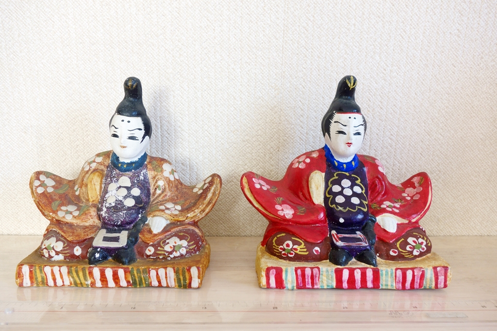 デコ屋敷の方は張り子人形で、こちらの長浜人形は土人形でして、筆の運び等に大きな差が有るのでしょう。