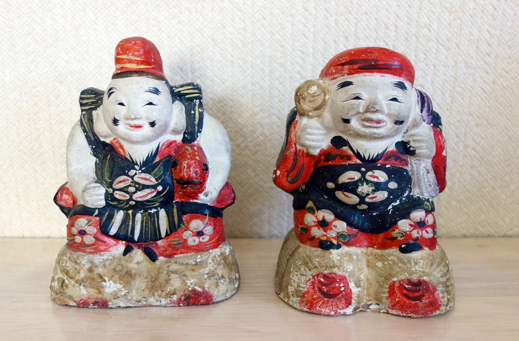 土人形の題材ですが、やはり縁起物が! その中でも大黒・恵比寿様が多いのでしょうかね?