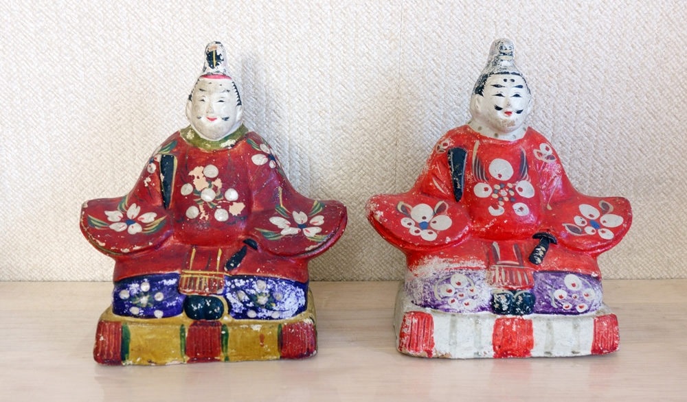 土人形(天神人形)の発祥は江戸末期頃…と言われていますが、それまで雛祭りで飾られるお雛様と言えば、俗称、京人形と呼ばれる(庶民には手の届かない)高貴な人達だけが入手できたモノだったそうです。しかし民衆の間でも楽しむ事が出来るように・・・と、地元で入手できる粘土を利用して素朴な味わいの土人形が広がって行ったと言われています。