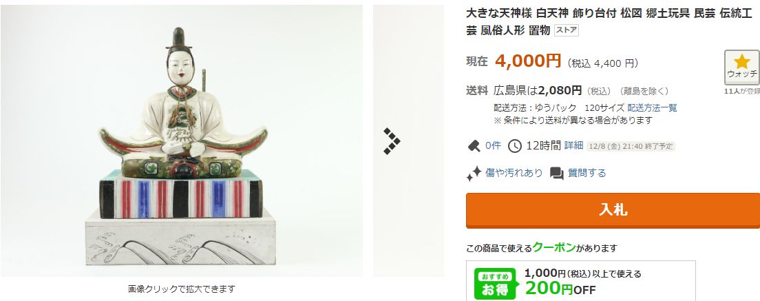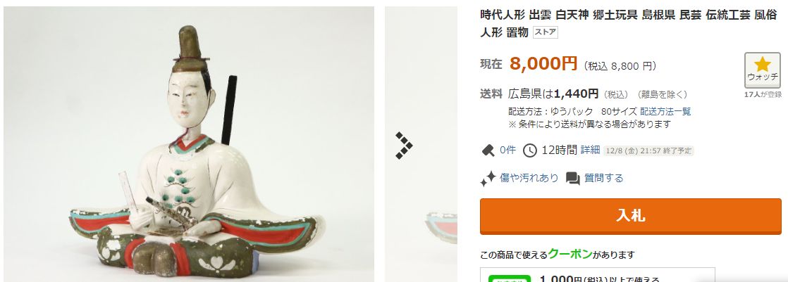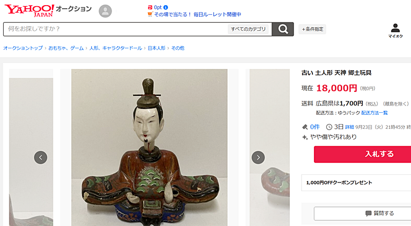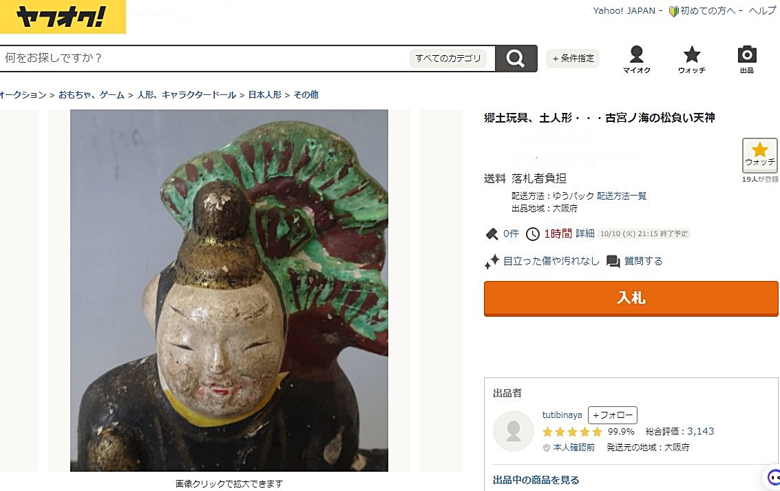 残念ながら、こちらの3つのお人形様‥‥滅多にヤフオクにupされる事は無くなりました。この白天神さんですが、どなたかがきっと落札なさることかと存じます。