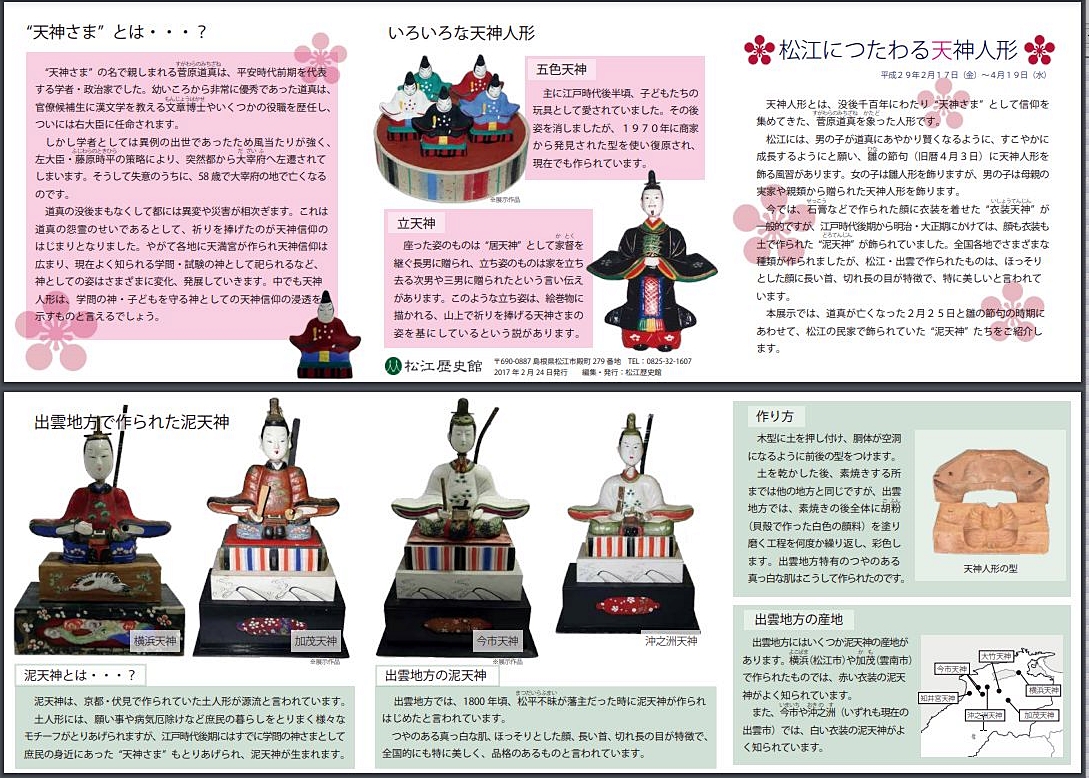 全国各地に天神信仰が残り、天神さん(菅原道真公)のお人形さんが誕生した事を知りました。