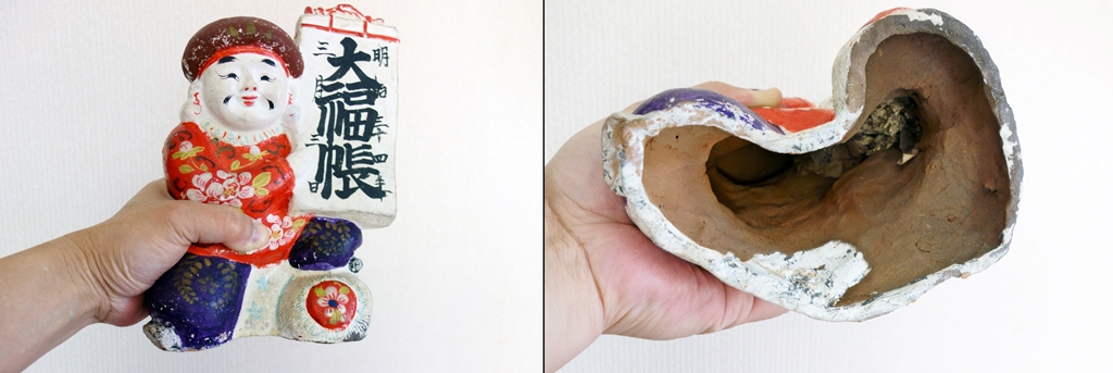 こちらのお品は(大切に扱われて来たのでしょう)和紙が破損しておりませんが、破れたモノを拝見すると内部には(焼成された)土の地肌を👀・・・ることが。