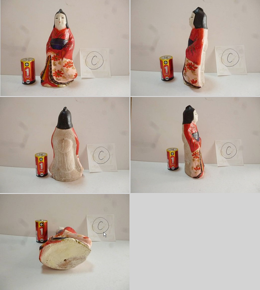 面相が全く違いますし、お顔の表面の仕上げの違い。更には底の部分・・・・三次人形で底が開いたままって、どうなのでしょうか?
