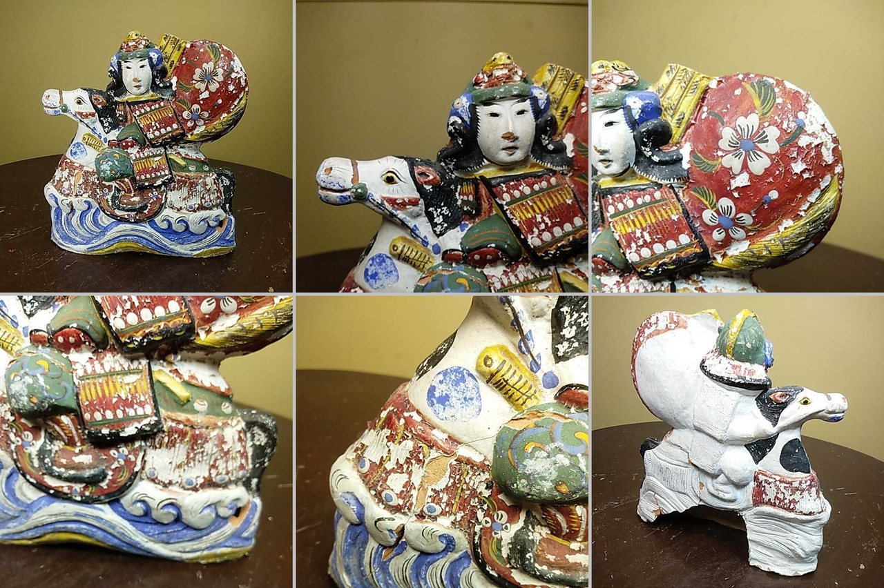 このようなジャンル・武者物の土人形の場合、大体は30cm以上の堂々とした作品ですが。