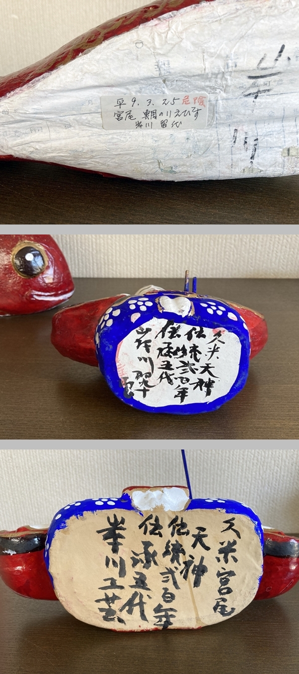 私が入手させて頂きました花巻人形の裏には製作者の”照井さま”がご丁寧なサインを記されていました。