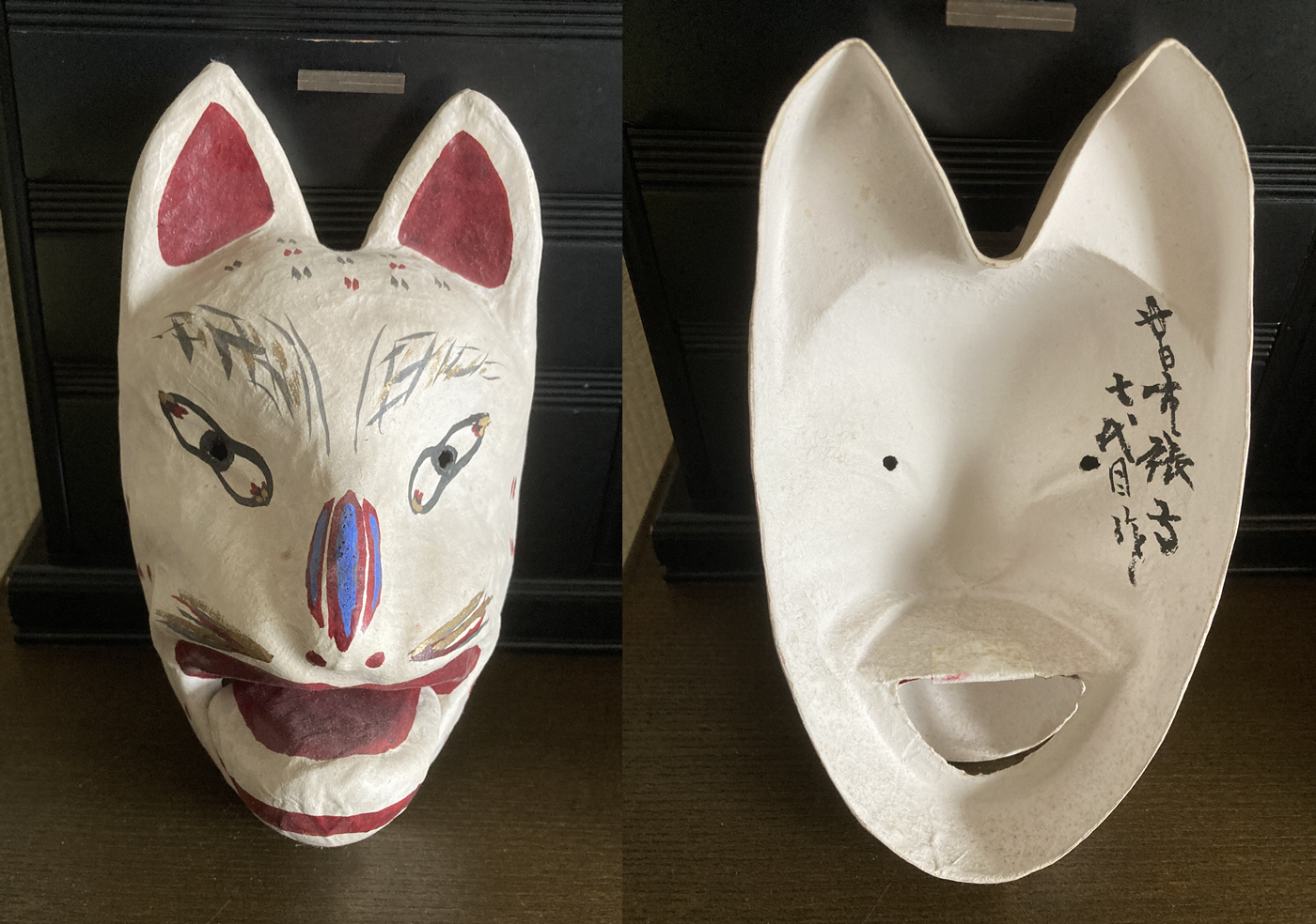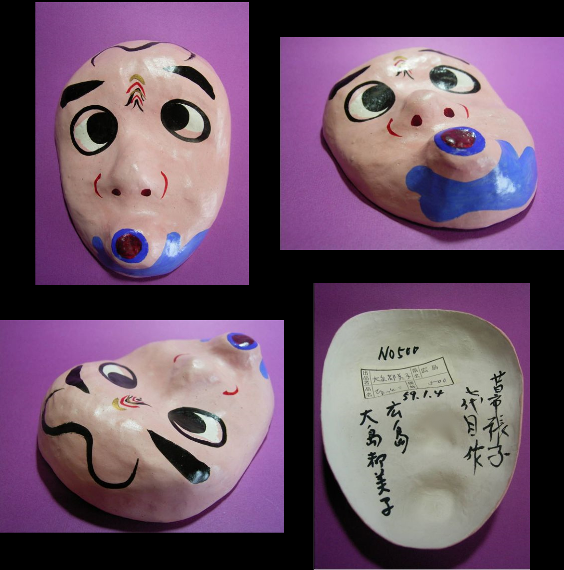 ご主人様が出て来られまして、私が用件を申し上げますと奥様がこのお面をお持ちになられて・・・・