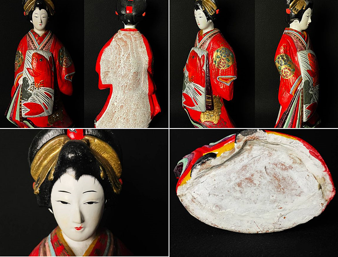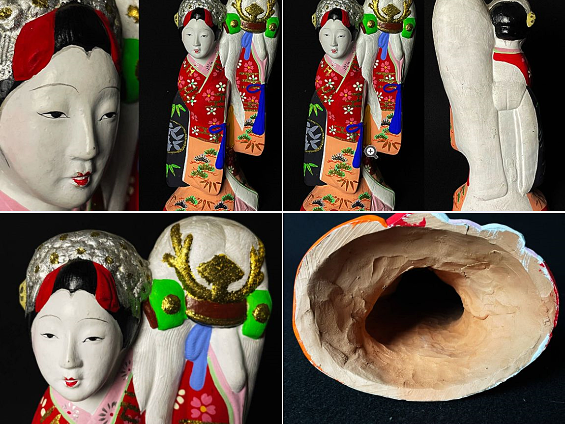 ちなみに長浜人形では、底が開いているのを拝見したことが。結構、サイズの大きなお人形さまでも(ビックリする程)軽くて、大変に薄手に出来ていた印象が。