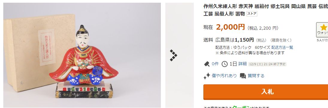 久米人形・・・・私が平成一桁頃に(郷土玩具…土人形に)興味を抱き始めまして・・・・頻回にヤフオクにアクセス致しておりました。