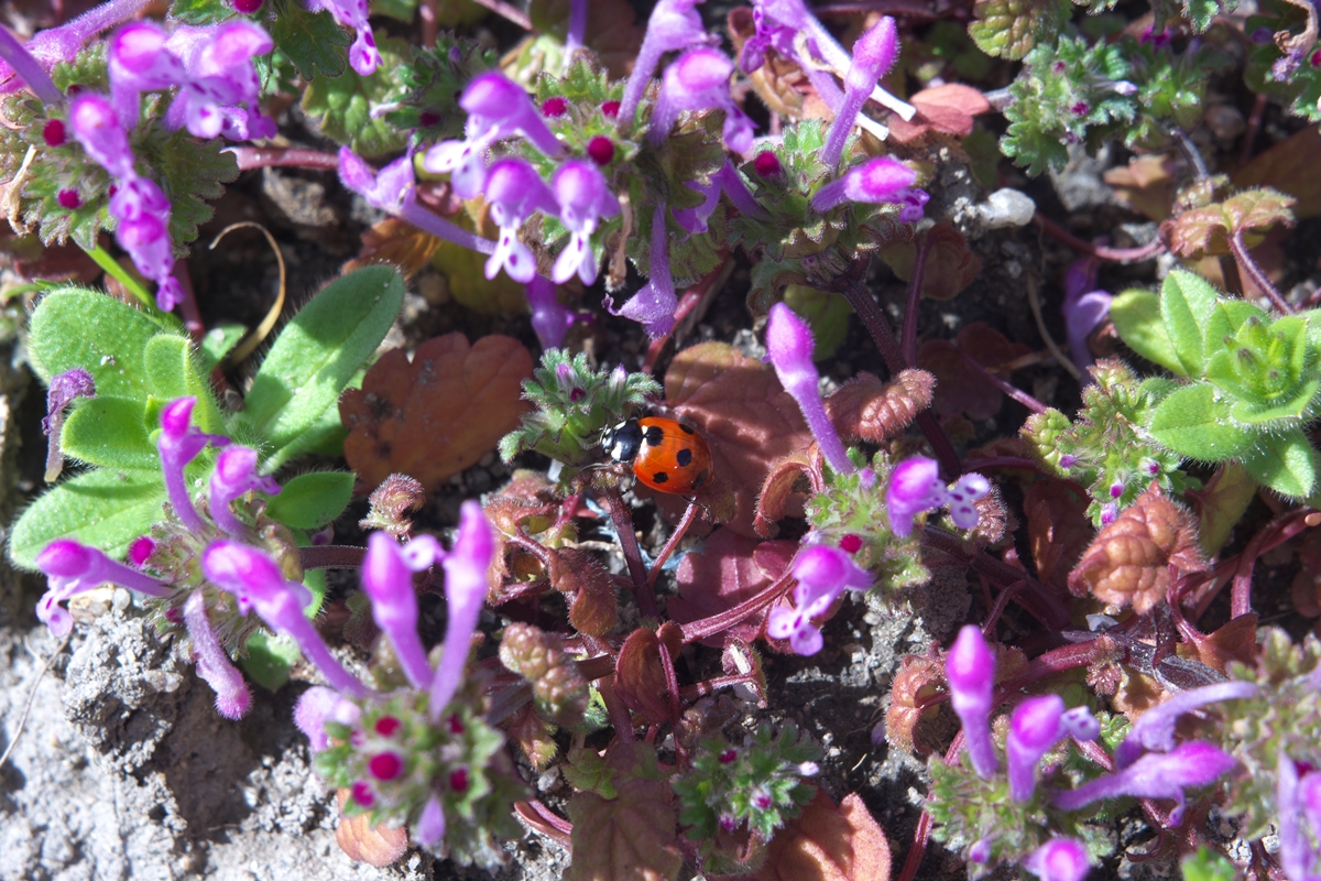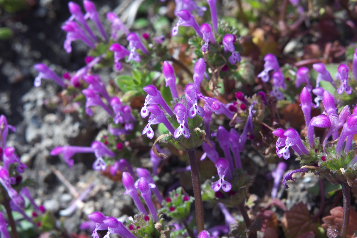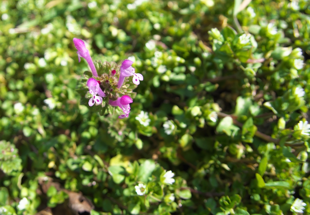 裏庭のあちらこちらで、ホトケノザが花を咲かせておりました。