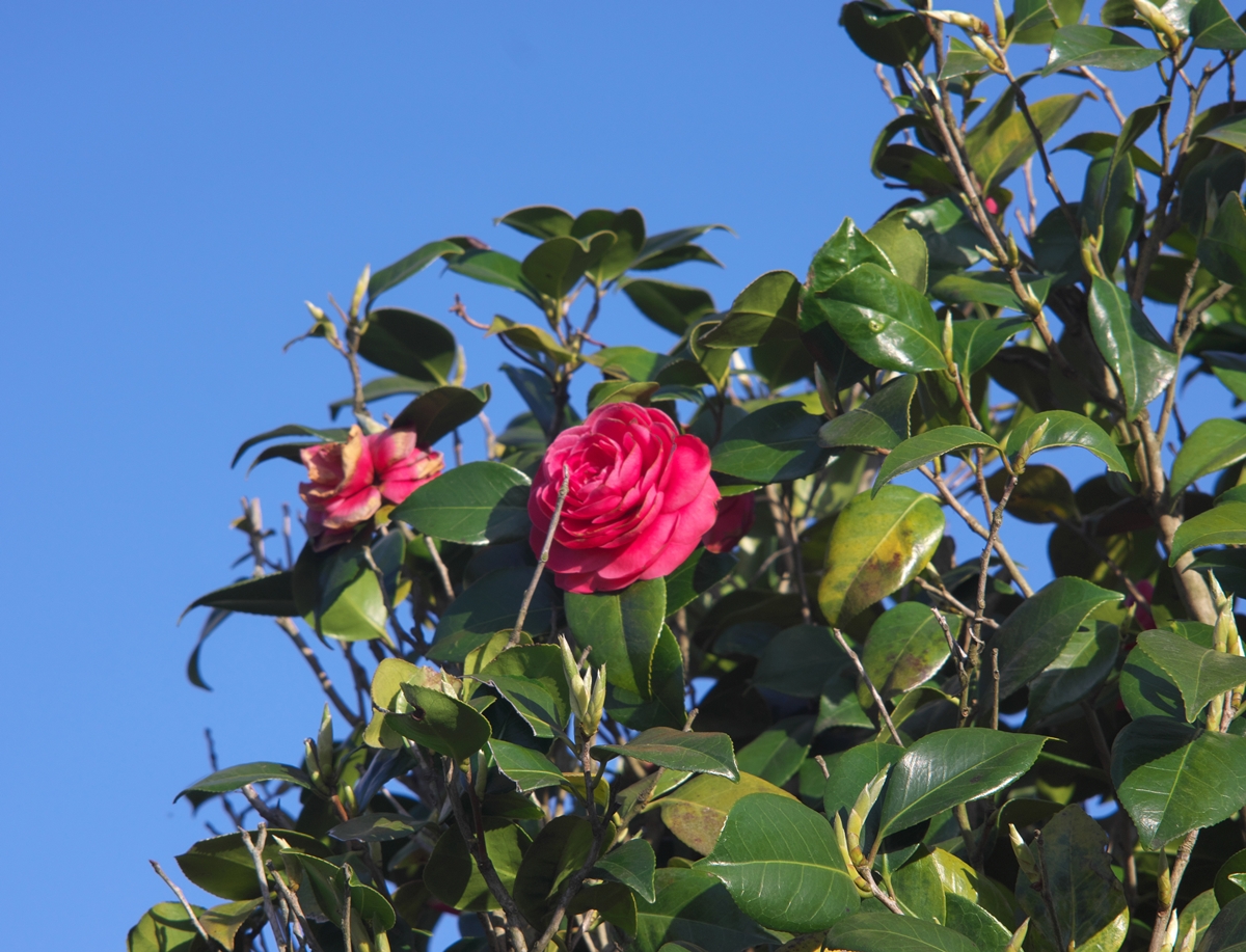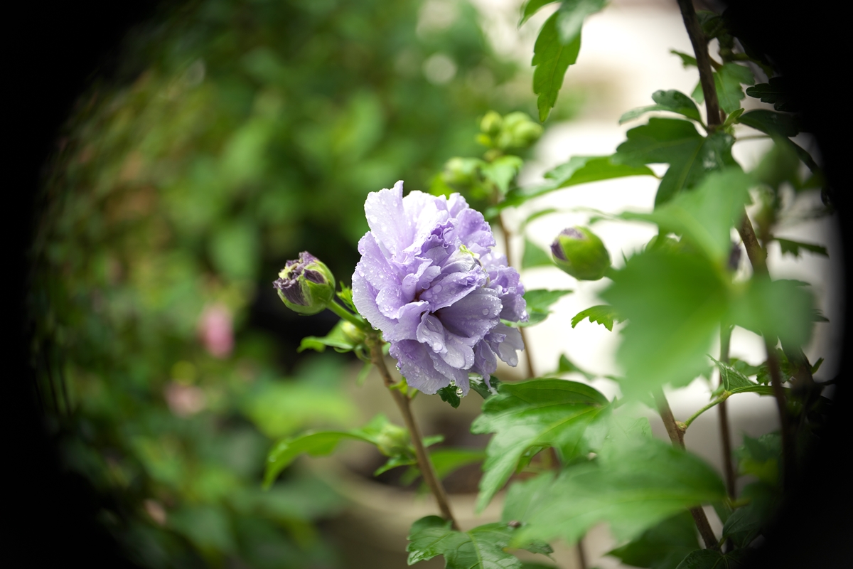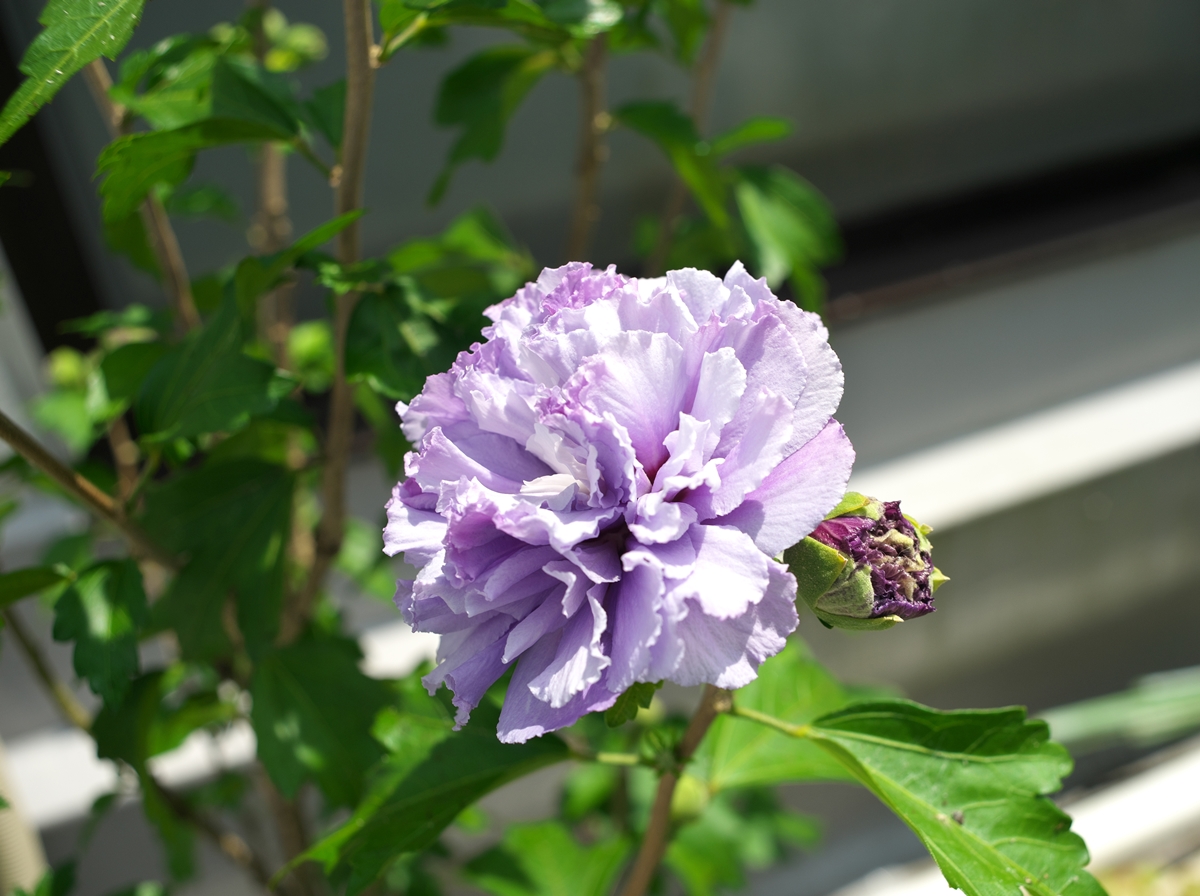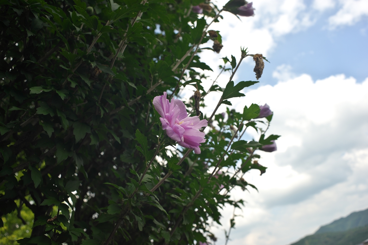 酔芙蓉・・・・2色の花が、同時に写し込める位置に咲いていました。