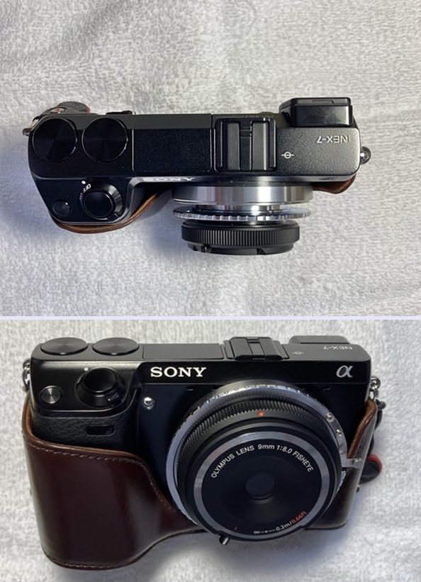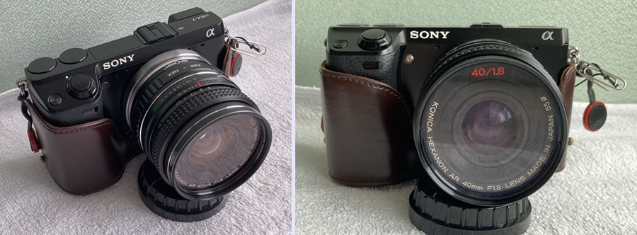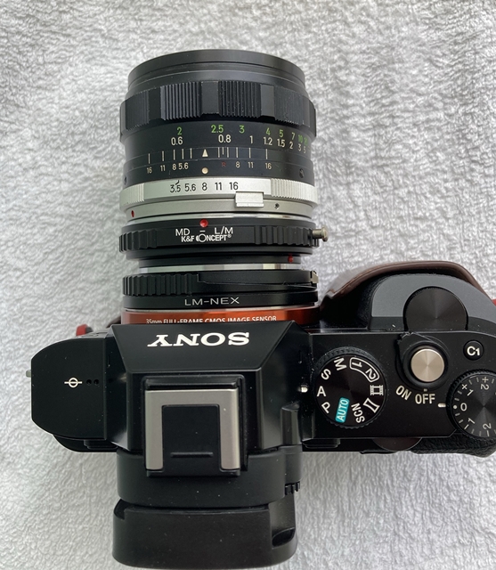この薄っぺらい(厚さが2mm弱の)アダプターを装着することで他社のレンズをSONY機で楽しむ事が出来るのでした。(逆・・・SONY社のレンズをOlympus機にはNGです)