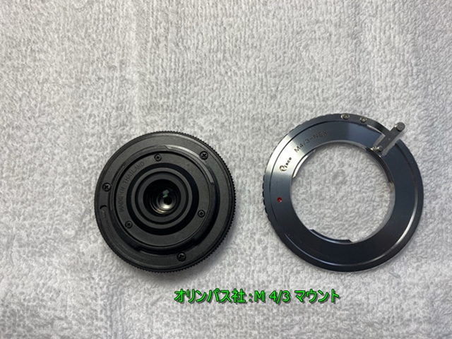 今回はOlympus 社のレンズをSONY社のカメラに・・・と言うことで薄っぺらいアダプターを準備しました。