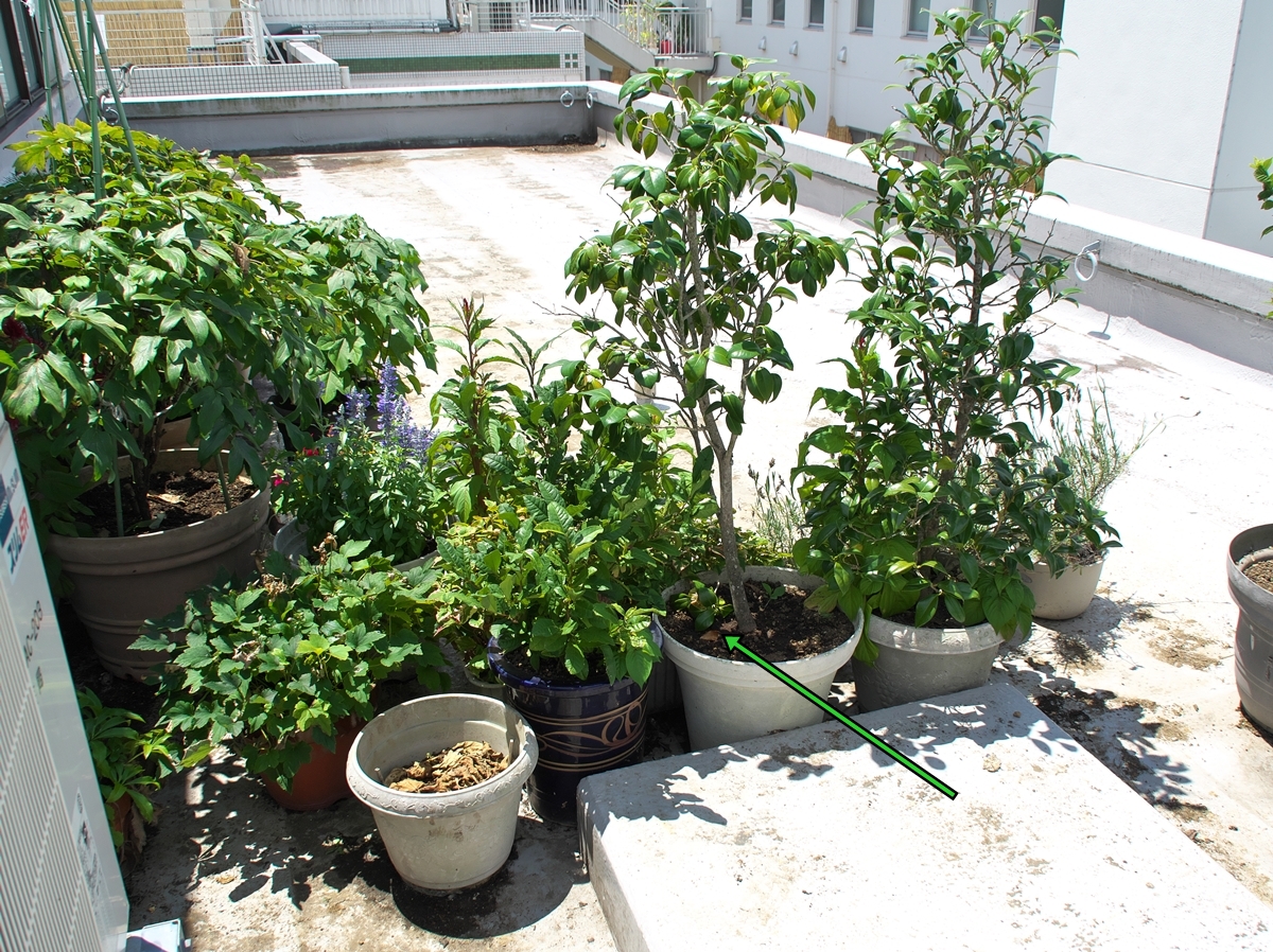 植木鉢が置かれている場所は北向きですので、ダイレクトに日が差すのは、まだ大分先の時刻に・・・・