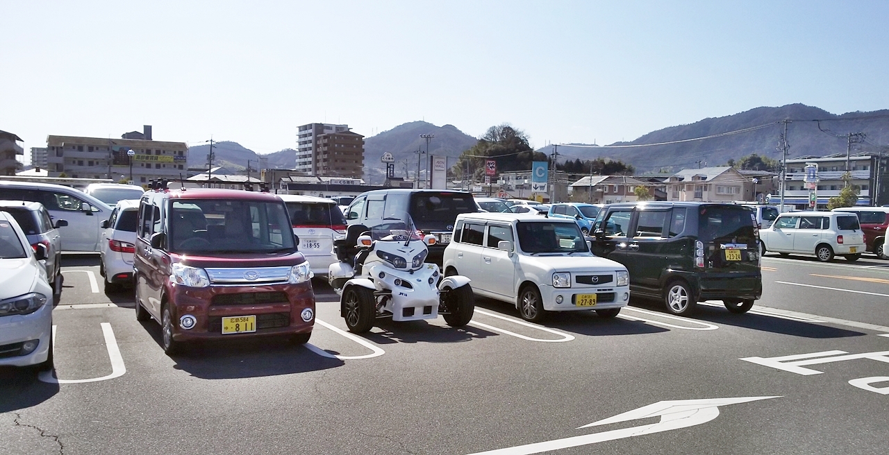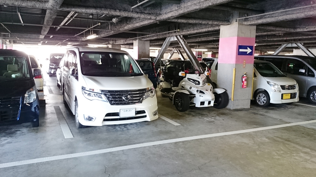 事前に,程々の空きスペース(90°方向転換をして、私の車の真後ろに横向きの位置で収納する!)を見繕っておりました。