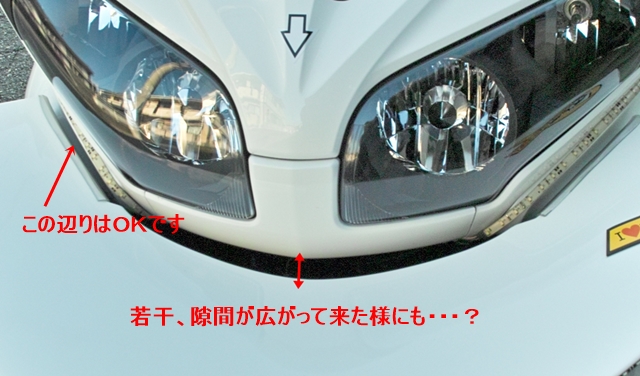 元々のフロントカウルと後付けのカバー部分との境目ですが、ピッチリと ”fit ” されてますね~!