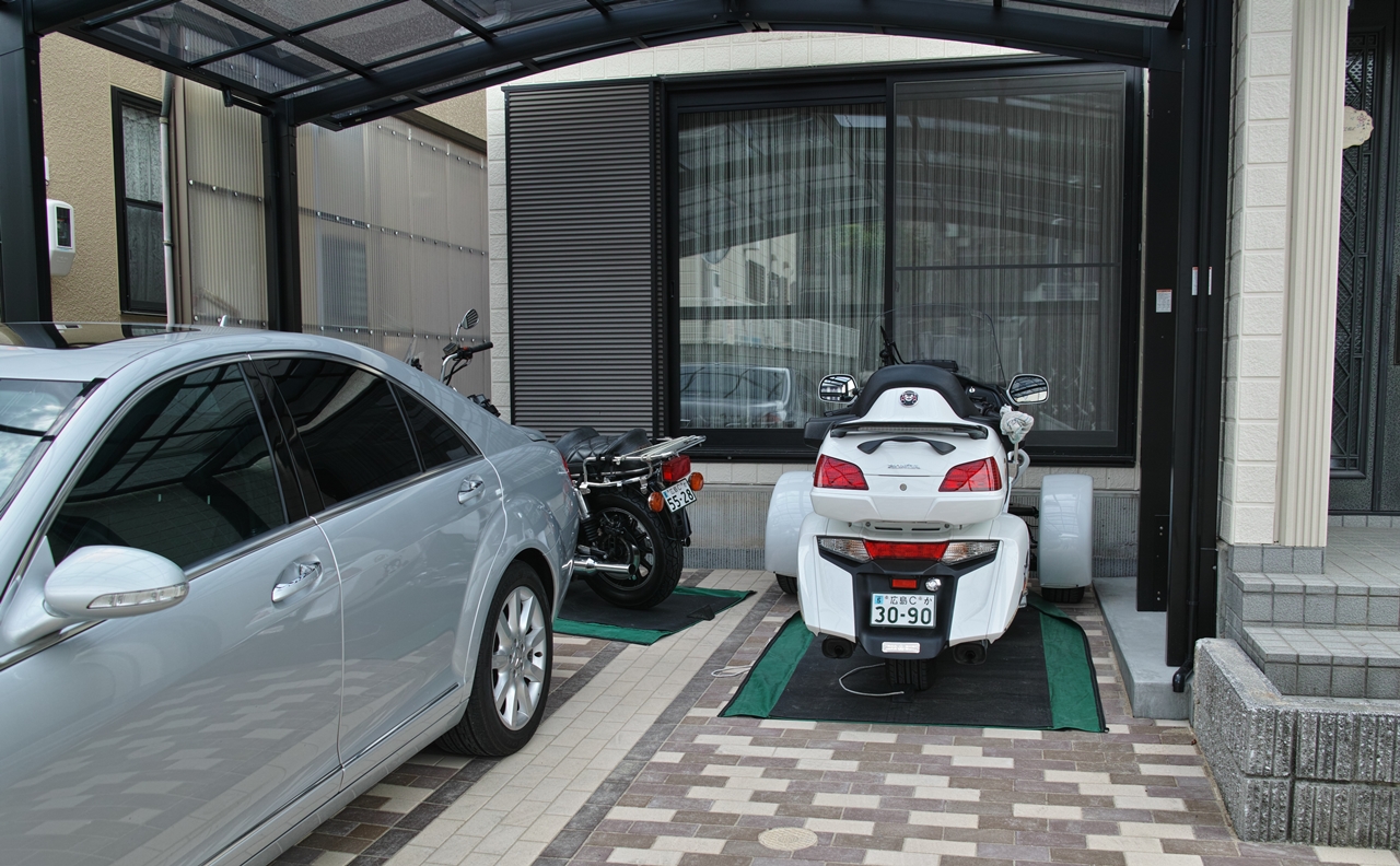 後、雨天走行時に前輪の巻き上げた水滴で、足元がずぶ濡れ状態となるそうで、広尾さまがフロアーカバーを作って下さいました。