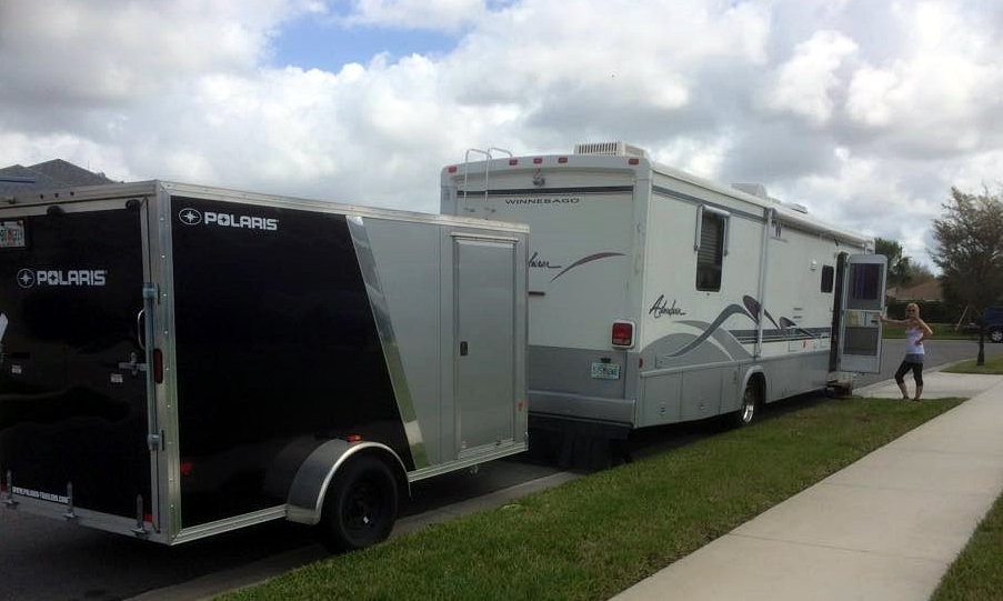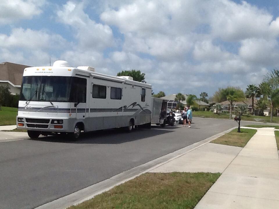 巨大なキャンピングカーに比して、トレーラーが小型(相対的にですよ)ですので、バックはすこぶる難易度が高いのでしょうね。