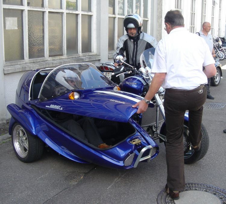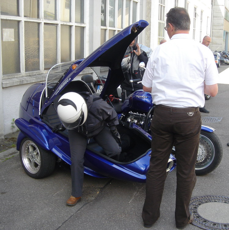 川上氏のお話では、サイドトライクのオーナーさまも、初めのうちは(バイクやサイドカーの感覚で走られると)当惑なさる、とのことでした。・・・・慣れられるまでが大変ですね!