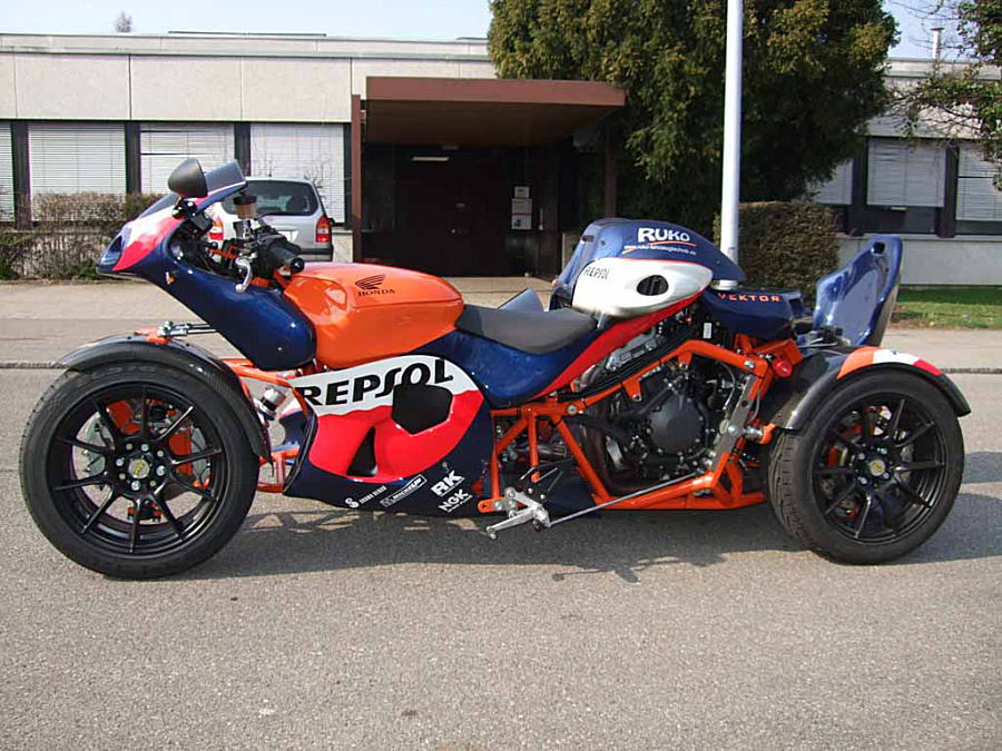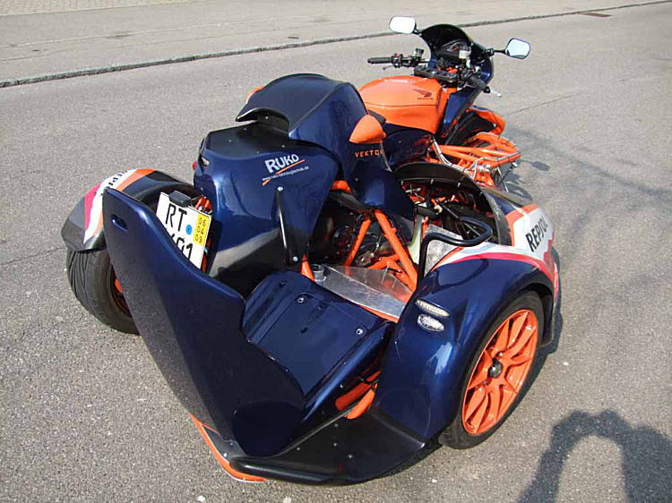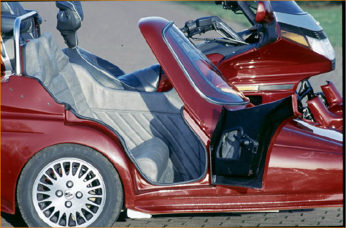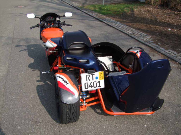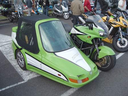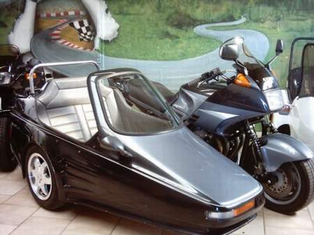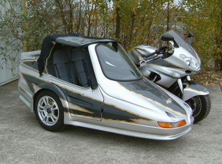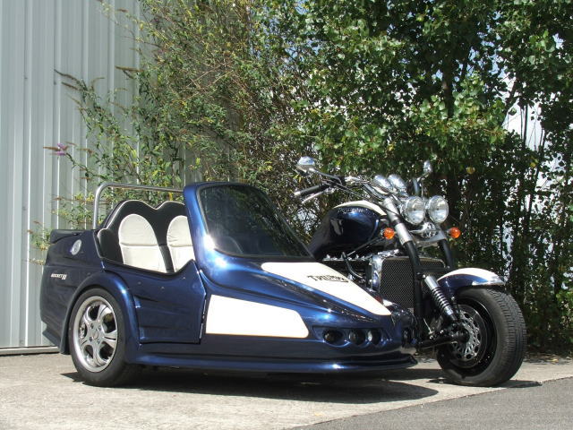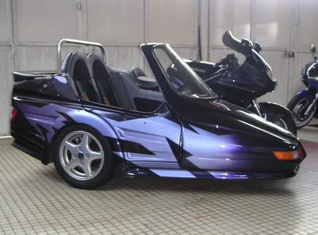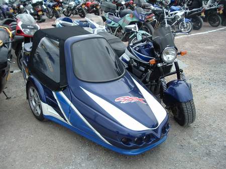 今やトライクの人気が上昇傾向となっておりますが、このサイドトライクは (サイドカー+トライク)÷2・・・って、とこでしょうか。(分類上はトライクですが)