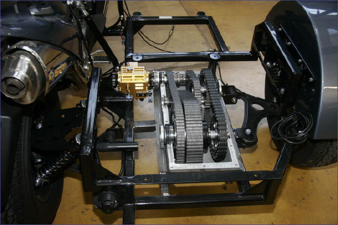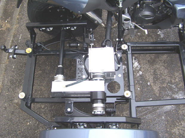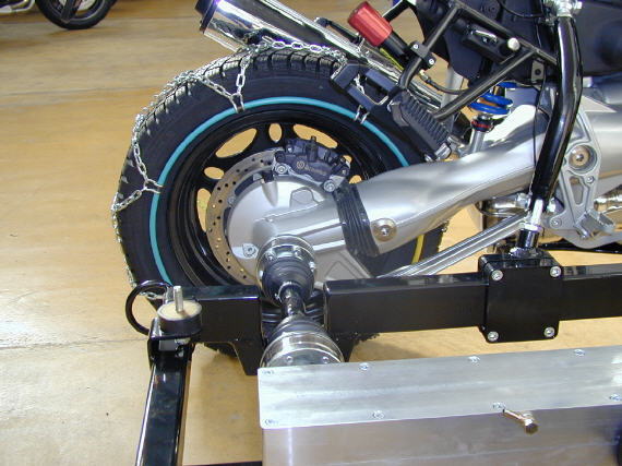 2つのシャフトをチェーンでつなげておりますが、サイズは各種取り揃えているそうですので、いろいろなサイドカーに対応出来るのでしょうね。 サイドトライクみたいな感じになるのでしょうが、そうなるとこれを運転出来る免許は、どうなるのでしょうか?