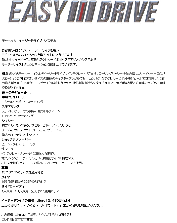 先ずは 1.Easy Drive System ですが、ハブステアリングを基本に高速走行向けのシステムみたいです。