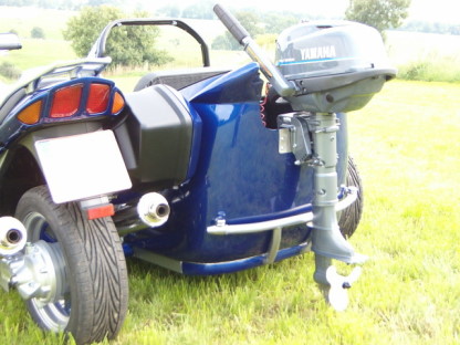 ボートトレーラーをサイドカーで牽引している写真は見たことがございますが、カーがボートと兼用しているのは、初めてでした!