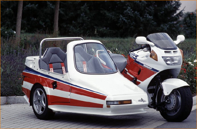 JSCの掲示板にも一時期、書き込みをしていたのですが、会員の方より”数年前のミーティングの時に、業者さんが(このシステムを装着した)サイドカーをトラックに乗せて展示していた”とのこと。