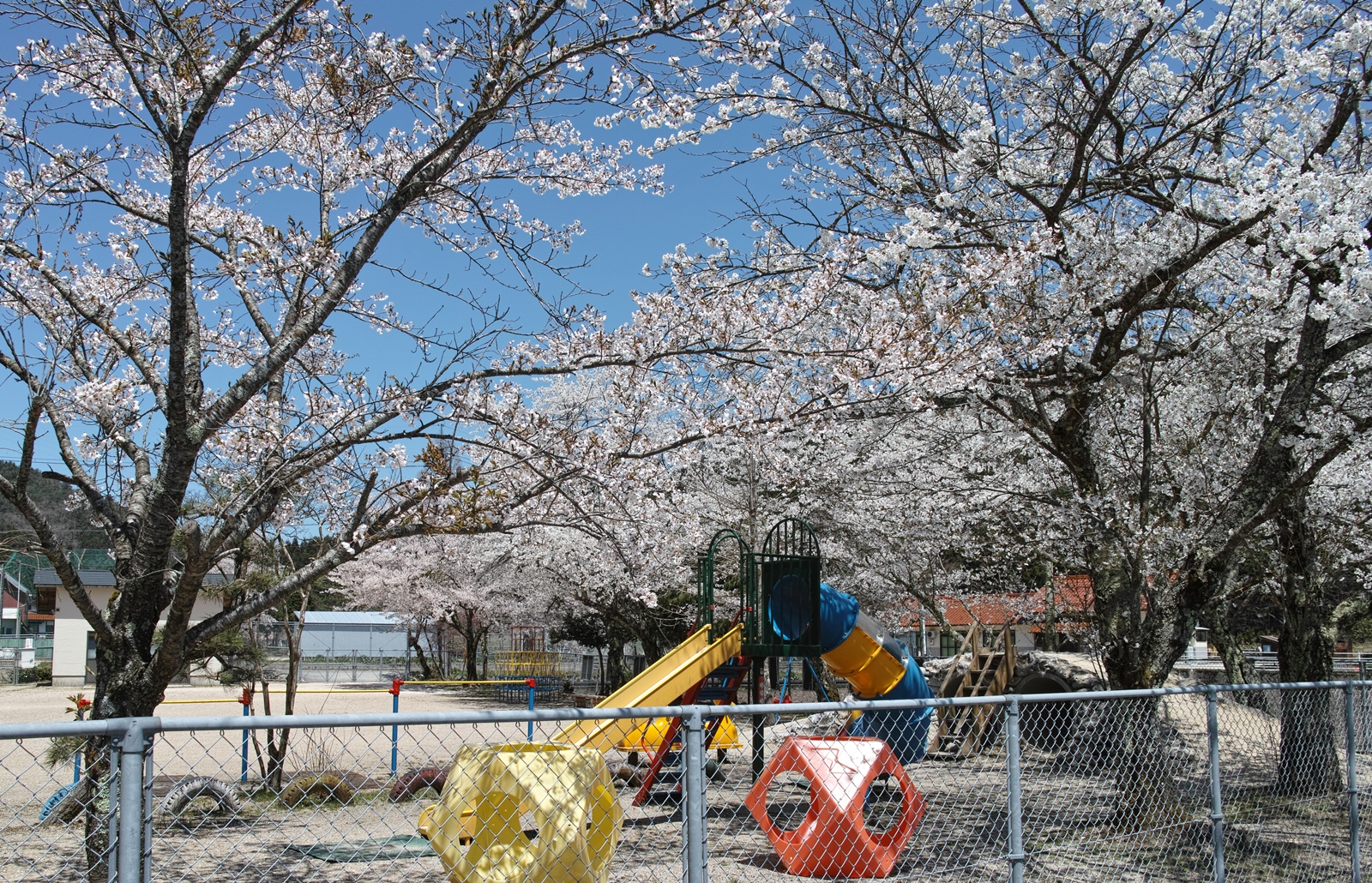 数年前に、こちらの保育園の桜に気が付いたのですが、多分、ソメイヨシノだと思いますが、周囲のお宅のに較べて満開の時期が少し遅いのでした!