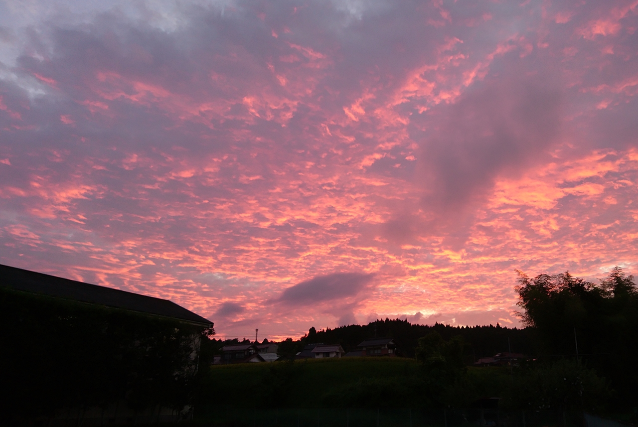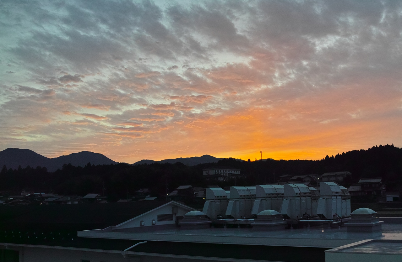 職場の建物・屋上に上がってみますと、ちょうど日の出時刻でした。