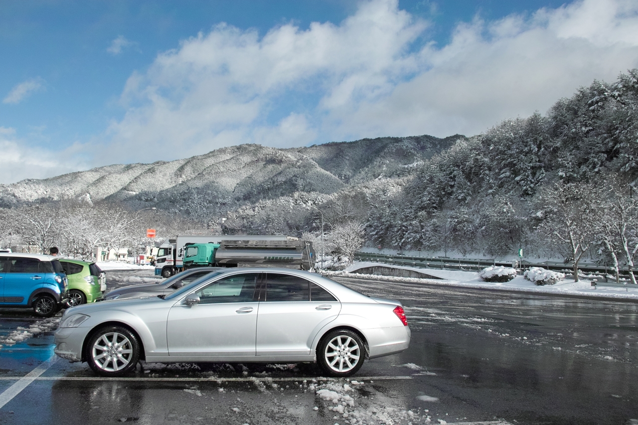 翌12日の早朝・・・・かなり冷え込んでいた様で、職場前の道路を走る車からガリガリ・・・と!
