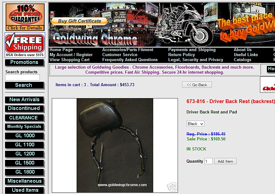 画像は、GL1100用のバックレストですが、残念ながら30年前には、このようなお品の存在を知る術もございませんでした~ (>_<)