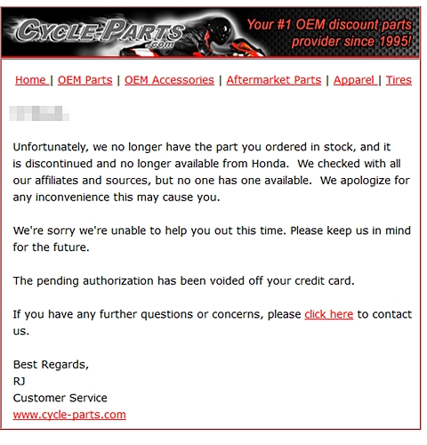 アメリカ国内のパーツサイトで検索すれば、まだまだ部品が入手OKみたいです。