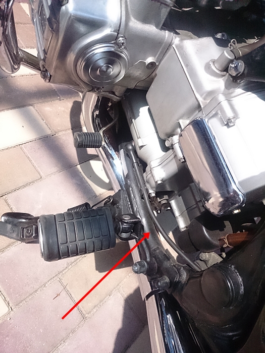ところでこのバイクですが、左側のステップが、若干、先端が下方に変位しているのでした。