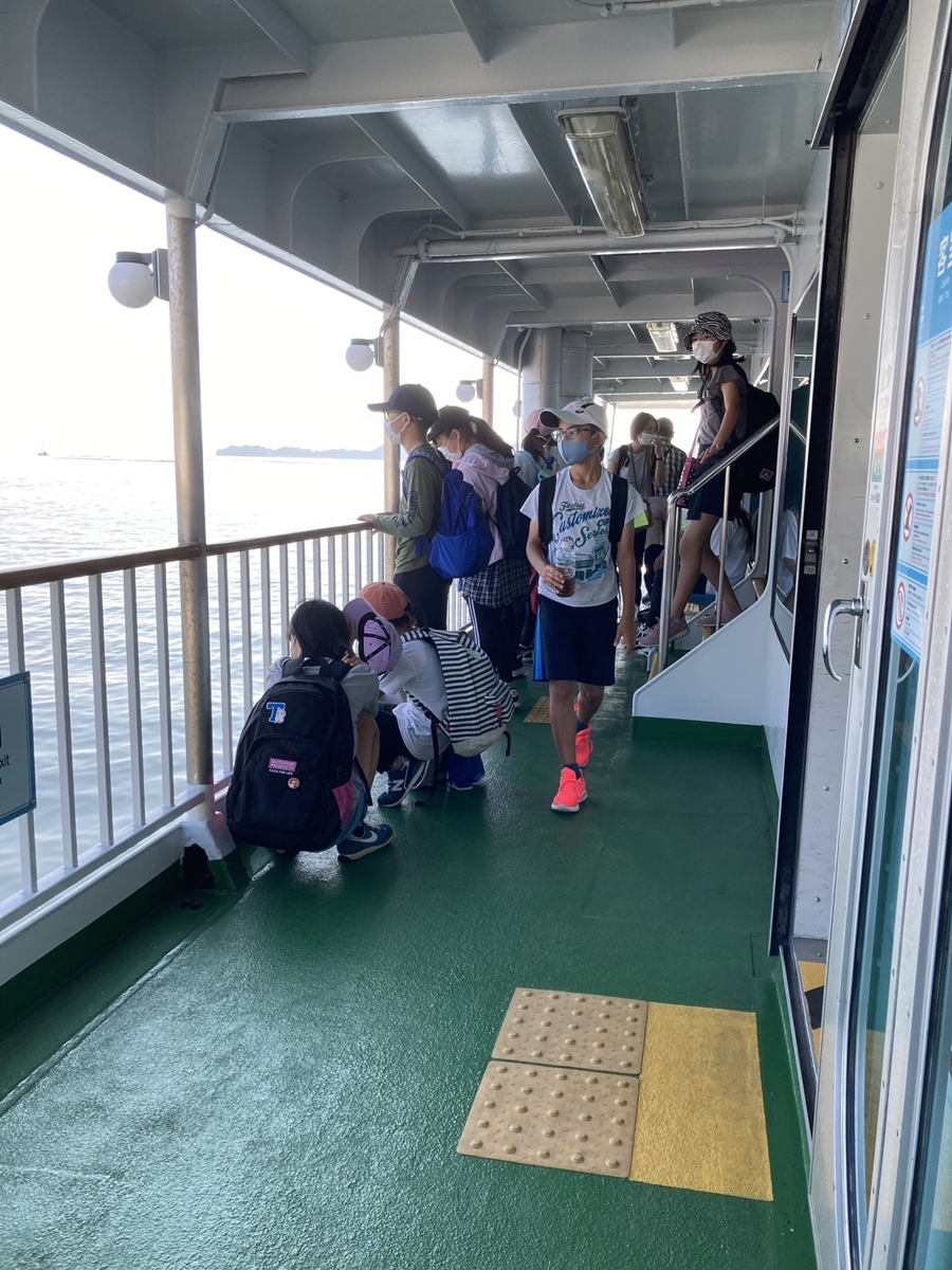 フェリーの甲板だと吹き抜ける風が寒く感じるようになりました。(コロナ禍以前より、船室内には入りません)
