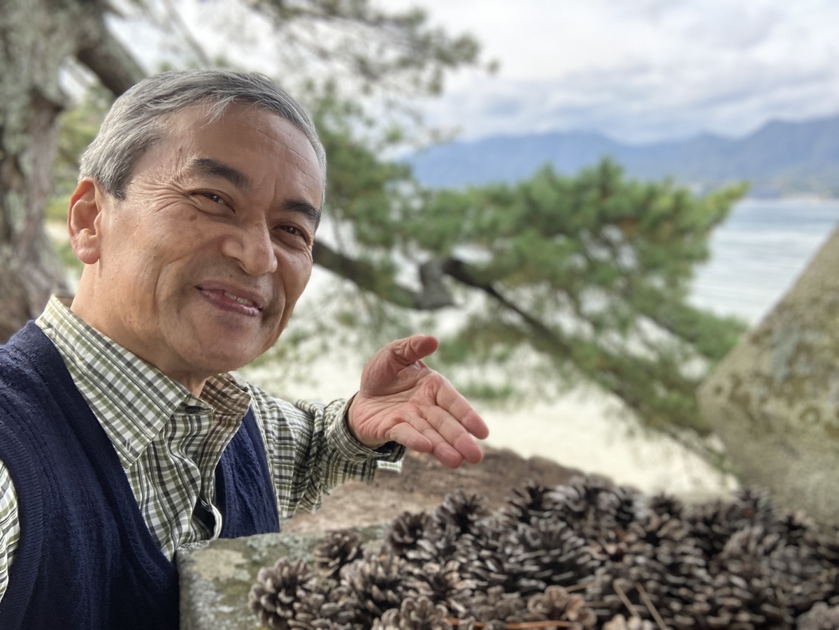 いつもの如く・・・・厳島神社の全景を楽しませて頂いて後は、この西の松原で休憩を。