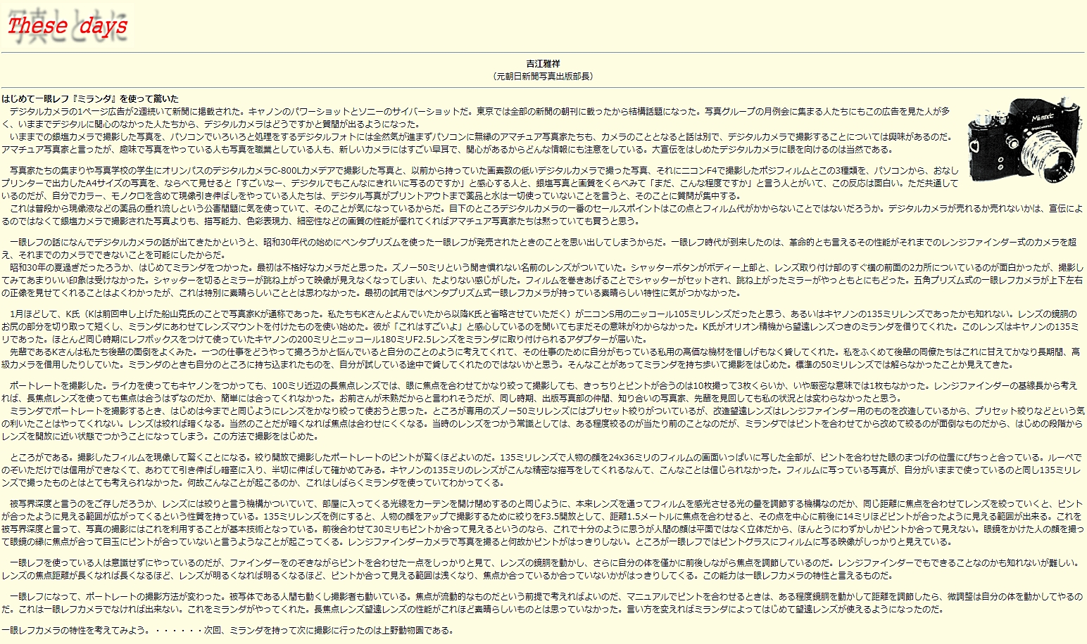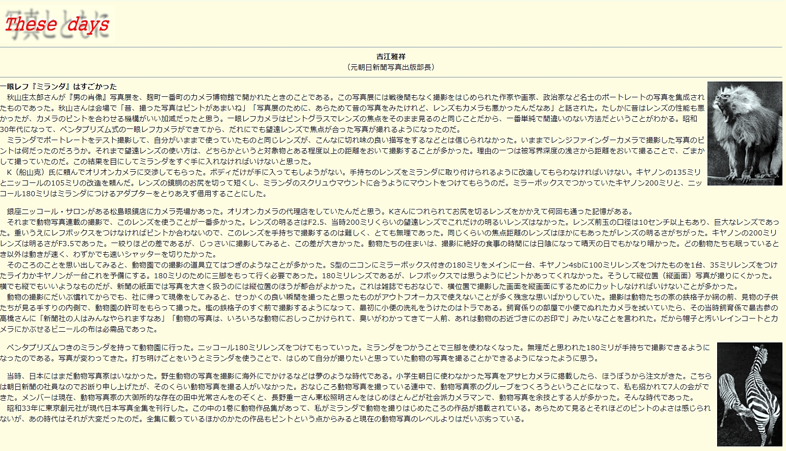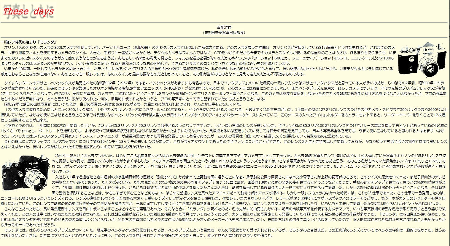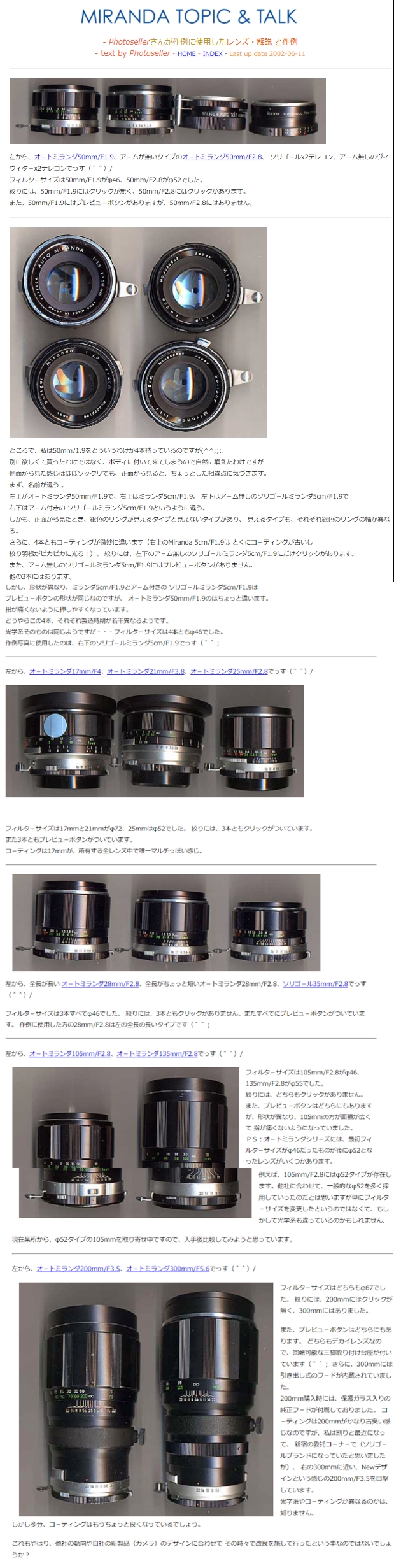 そのレンズの由縁、お持ちの方のコメント、実際の作例・・・と、どんどん検索の間口が広がって行き、なかなか元の場所に戻って来れなくなってしまうのでした。![]()