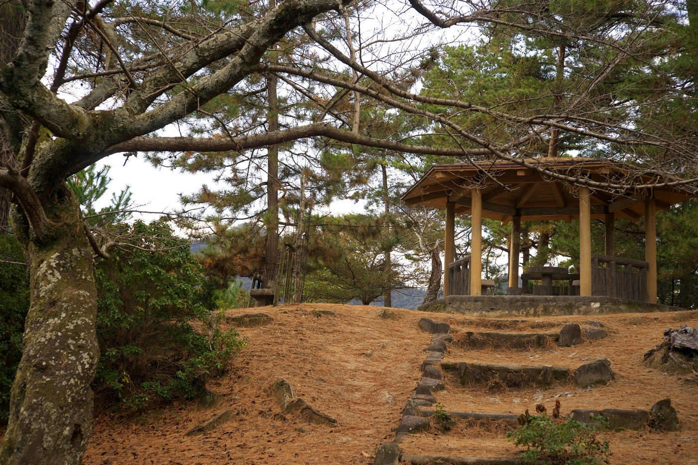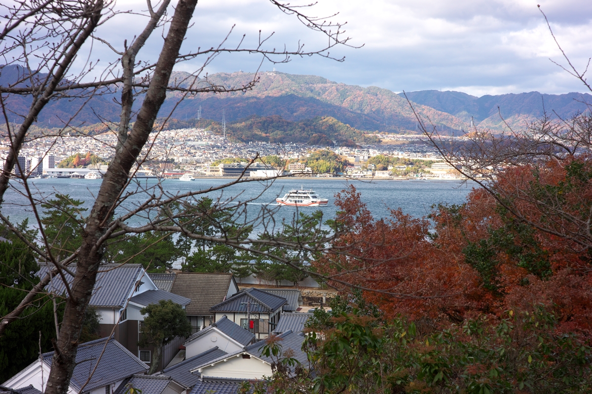 フェリーを降りて、すぐ前の丘:要害山に参ります。