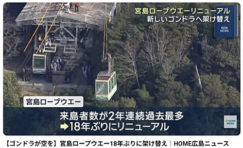 広電チャンネルの方にも、宮島ロープウェイ工事関連の動画がupされていました(*^-^*)