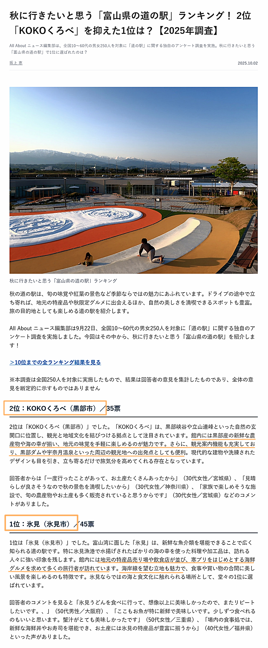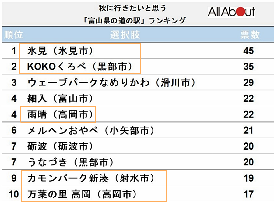秋に行きたいと思う「富山県の道の駅」ランキング!