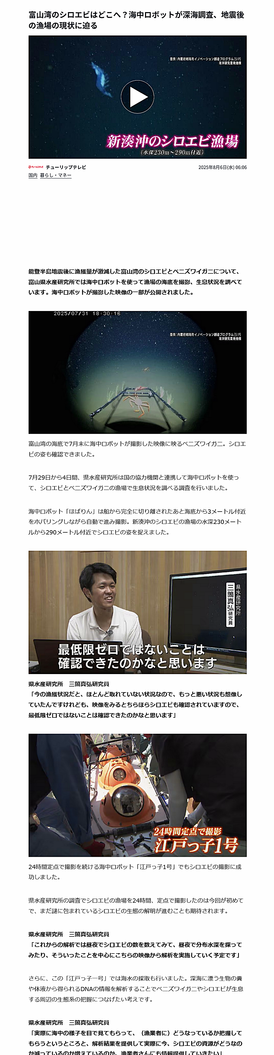 富山湾のシロエビはどこへ?海中ロボットが深海調査、地震後の漁場の現状に迫る